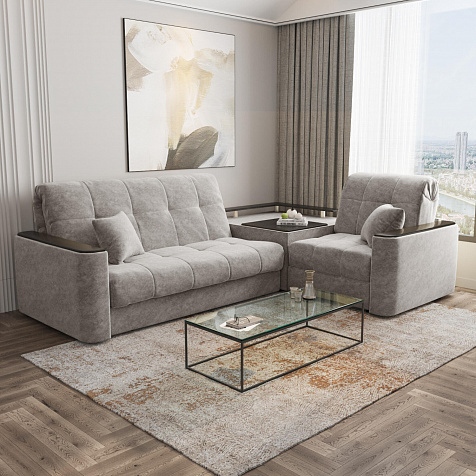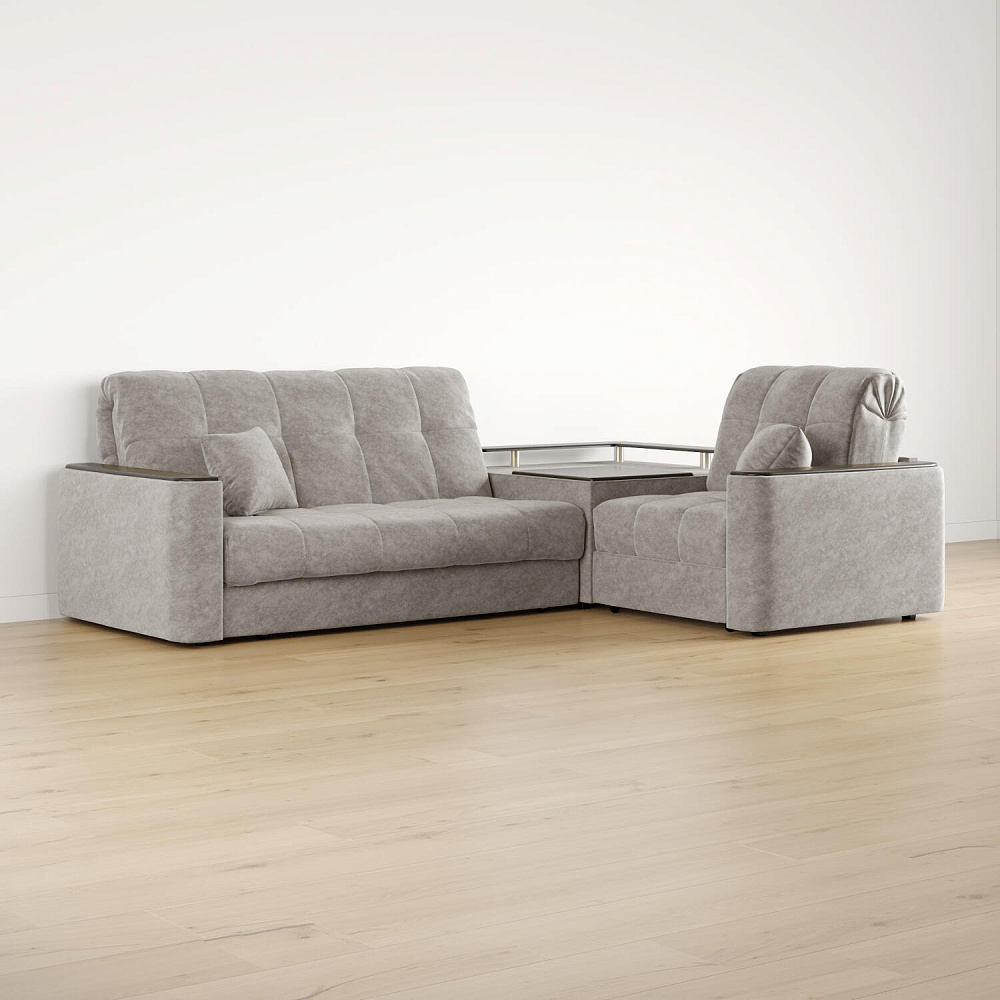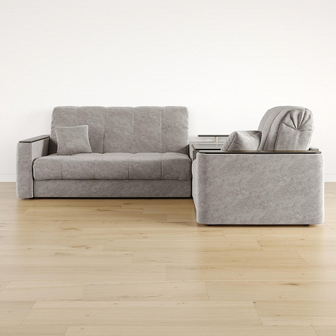 Диван угловой «Камелот» с баром станет главным местом для отдыха и приема гостей. Модель оснащена баром, на котором можно расположить еду и напитки во время просмотра фильмов и сериалов. Пропорциональные формы, плавные линии на сиденье и спинке подчеркивают лаконичный дизайн, поэтому диван подойдёт для любого современного интерьера. Диван создаст в комнате комфортную обстановку и придаст ей неповторимый вид.