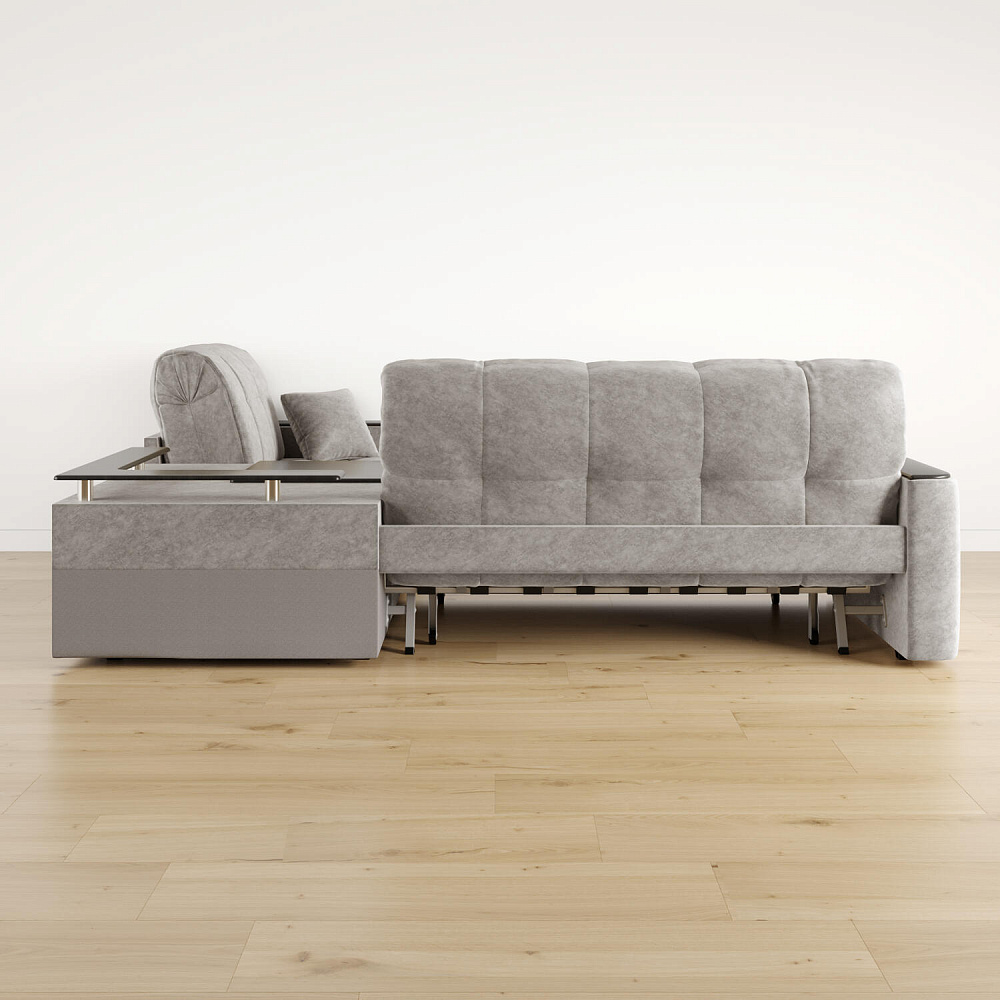 - Универсальный угол. Диван подстроится под условия помещения — бар устанавливается как слева, так и справа.