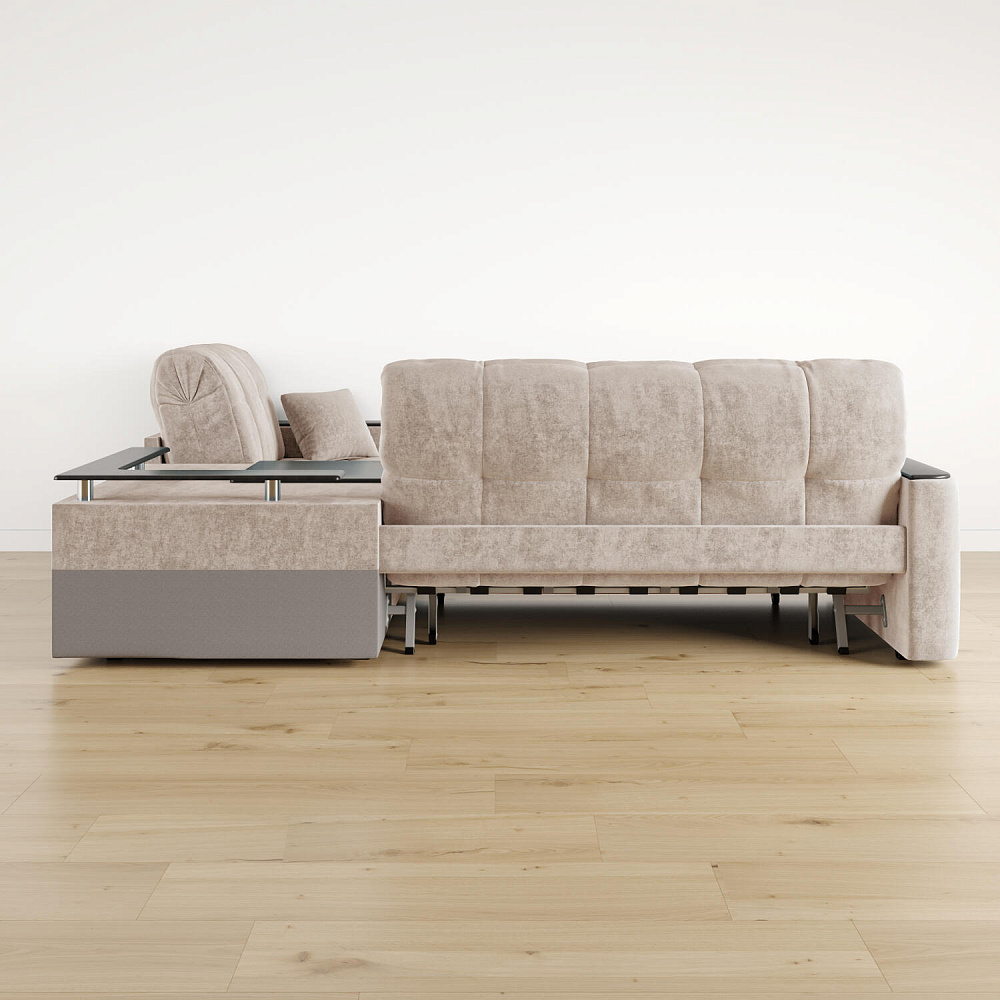 - Универсальный угол. Диван подстроится под условия помещения — бар устанавливается как слева, так и справа.