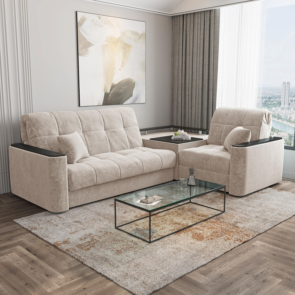 Обивка: велюр Happy (плотность ткани — 293,4 г/м2), устойчивость к истиранию — 40 000 циклов по тесту Мартиндейла.