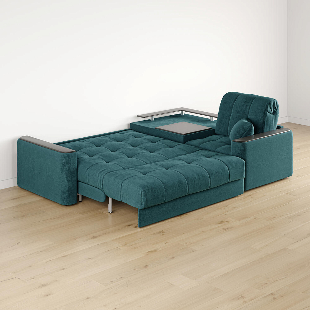 - Вместительная система хранения. Под баром расположен вместительный короб, а в угловом модуле — глубокий ящик. В них удобно хранить одеяла, подушки, пледы и постельное белье.