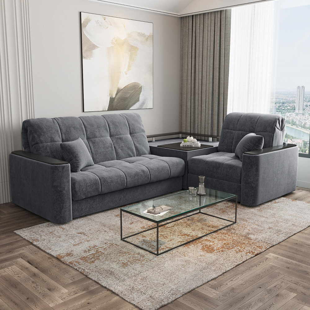 Обивка: велюр Happy (плотность ткани — 293,4 г/м2), устойчивость к истиранию — 40 000 циклов по тесту Мартиндейла.