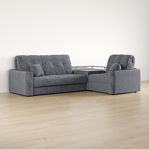 - Универсальный угол. Диван подстроится под условия помещения — бар устанавливается как слева, так и справа.