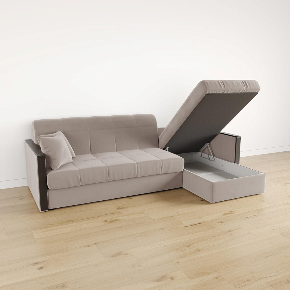 Угловой диван «Бристоль» с оттоманкой сделает отдых ещё удобнее. Модель оснащена накладками на подлокотниках, на которые удобно положить ТВ-пульт или смартфон. В оттоманке находится вместительный отсек для постельного белья и других вещей. Благодаря механизму трансформации «Аккордеон» диван легко превращается в полноценную кровать для двух человек. Пропорциональные формы, плавные линии декоративного канта подчеркивают лаконичный дизайн, поэтому диван подойдет для любого современного интерьера.