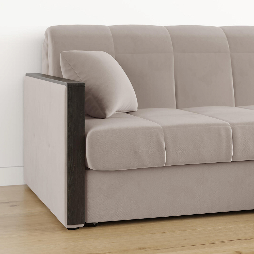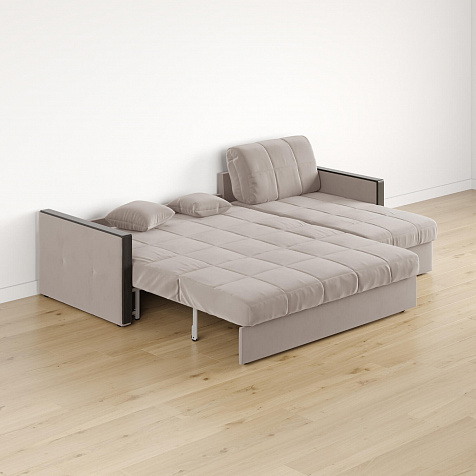 Механизм трансформации «Аккордеон». Чтобы разложить диван, необходимо приподнять сиденье и слегка потянуть на себя, далее диван разложится сам. Поверхность спального места ровная, без петель и швов, поэтому сон будет приятным и комфортным. Прорезиненные ролики защитят напольное покрытие от истирания.