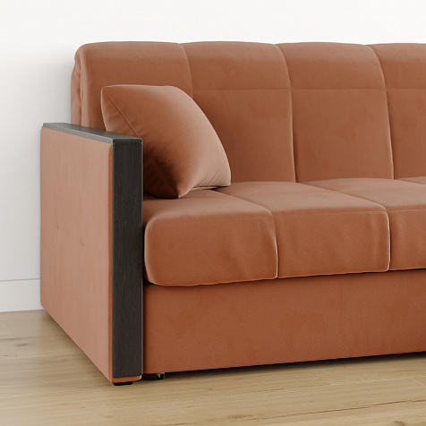 Механизм трансформации «Аккордеон». Чтобы разложить диван, необходимо приподнять сиденье и слегка потянуть на себя, далее диван разложится сам. Поверхность спального места ровная, без петель и швов, поэтому сон будет приятным и комфортным. Прорезиненные ролики защитят напольное покрытие от истирания.