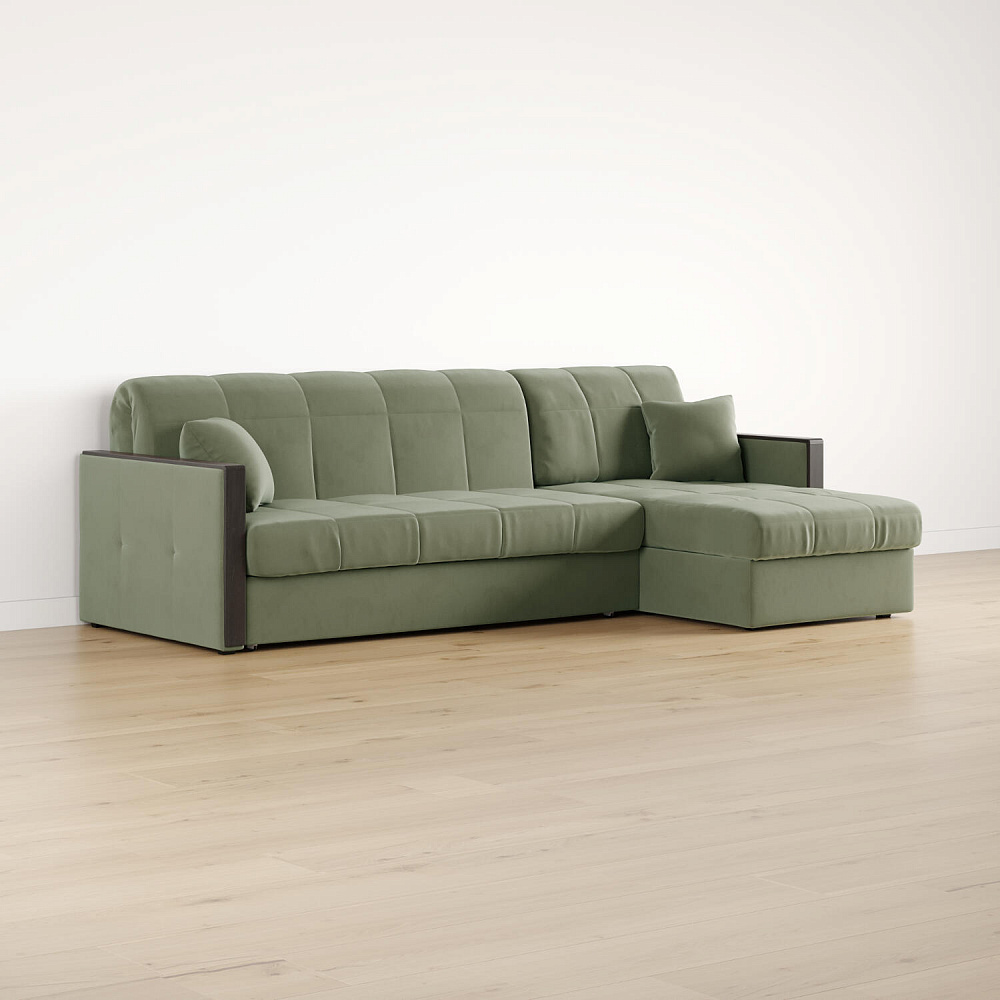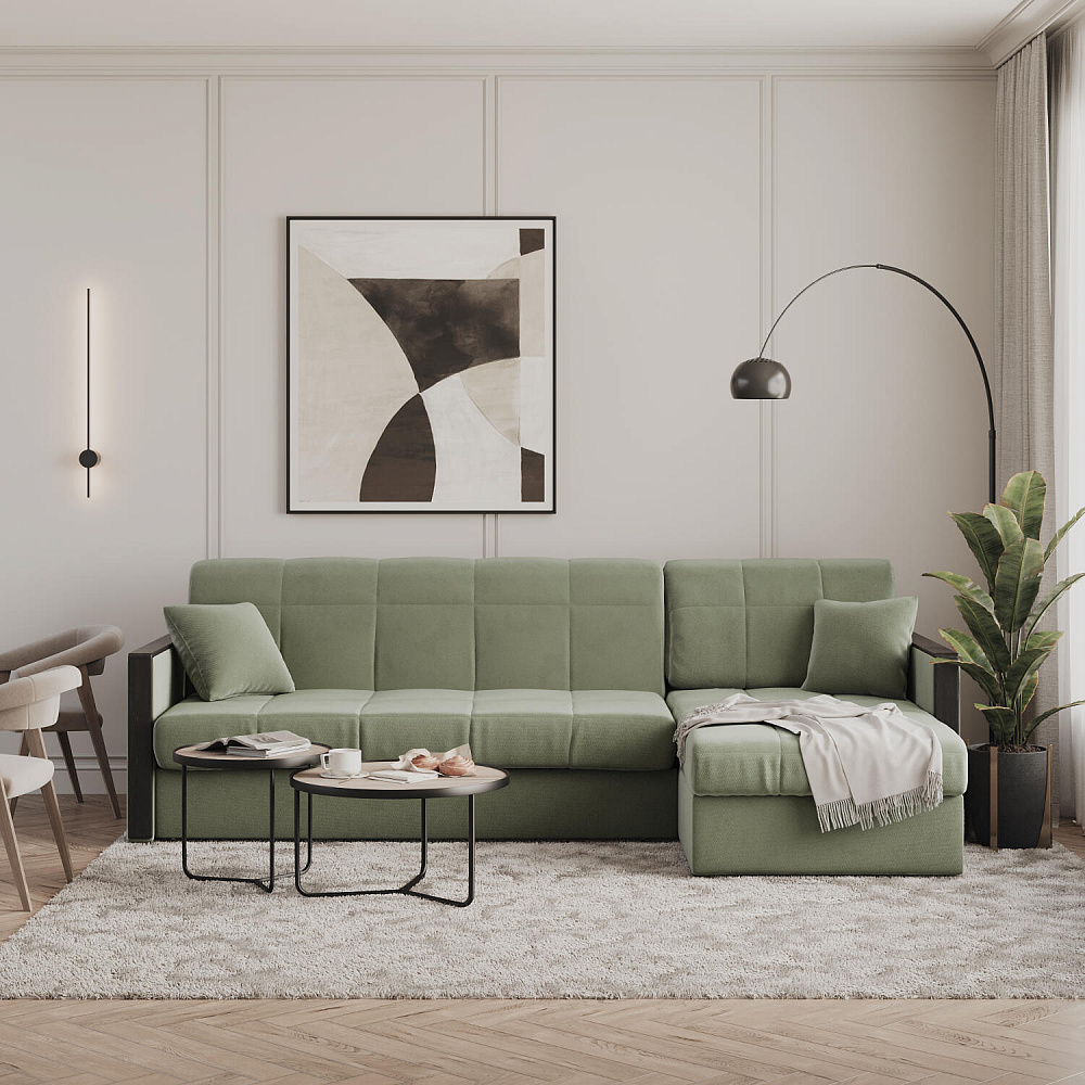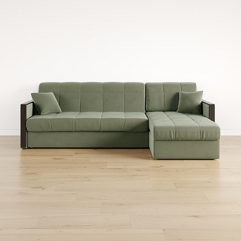 Угловой диван «Бристоль» с оттоманкой сделает отдых ещё удобнее. Модель оснащена накладками на подлокотниках, на которые удобно положить ТВ-пульт или смартфон. В оттоманке находится вместительный отсек для постельного белья и других вещей. Благодаря механизму трансформации «Аккордеон» диван легко превращается в полноценную кровать для двух человек. Пропорциональные формы, плавные линии декоративного канта подчеркивают лаконичный дизайн, поэтому диван подойдет для любого современного интерьера.