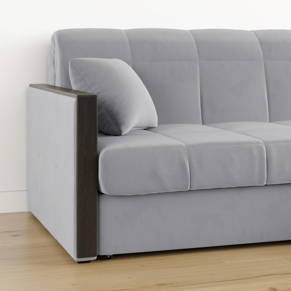 Механизм трансформации «Аккордеон». Чтобы разложить диван, необходимо приподнять сиденье и слегка потянуть на себя, далее диван разложится сам. Поверхность спального места ровная, без петель и швов, поэтому сон будет приятным и комфортным. Прорезиненные ролики защитят напольное покрытие от истирания.