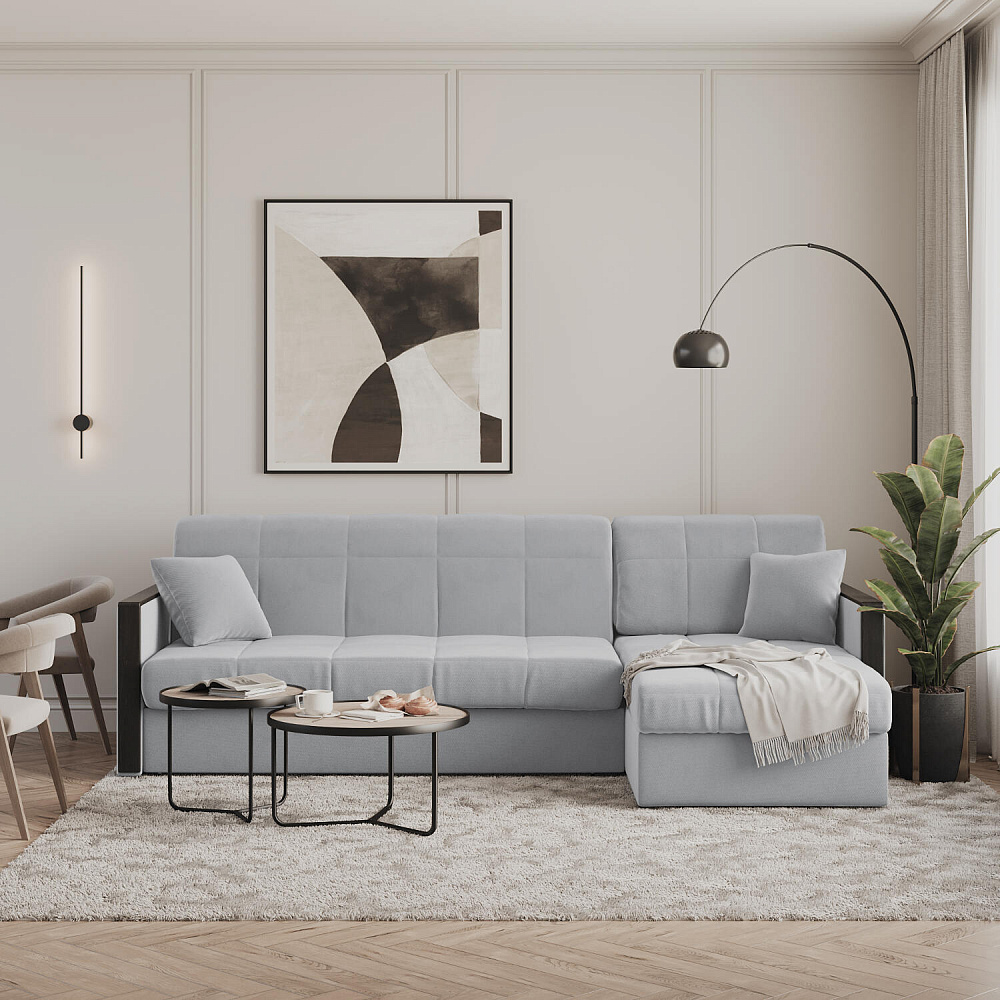 Универсальный угол. Диван подстроится под условия помещения — оттоманка устанавливается как слева, так и справа.