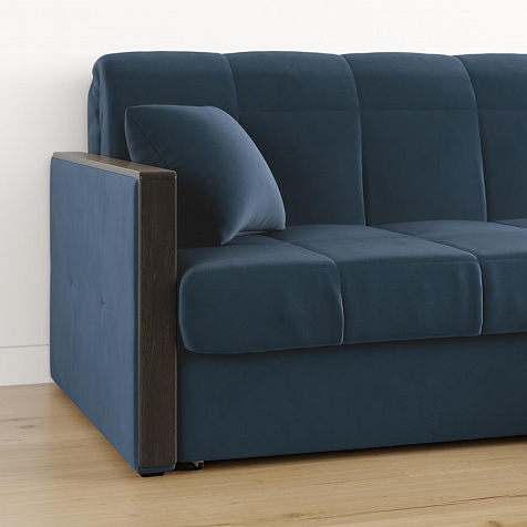 Обивка из велюра с влагоотталкивающей пропиткой. Плотная и мягкая ткань отличается ненавязчивым узором в виде мелких диагональных линий.