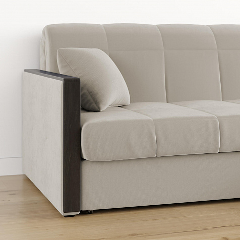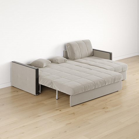 Механизм трансформации «Аккордеон». Чтобы разложить диван, необходимо приподнять сиденье и слегка потянуть на себя, далее диван разложится сам. Поверхность спального места ровная, без петель и швов, поэтому сон будет приятным и комфортным. Прорезиненные ролики защитят напольное покрытие от истирания.