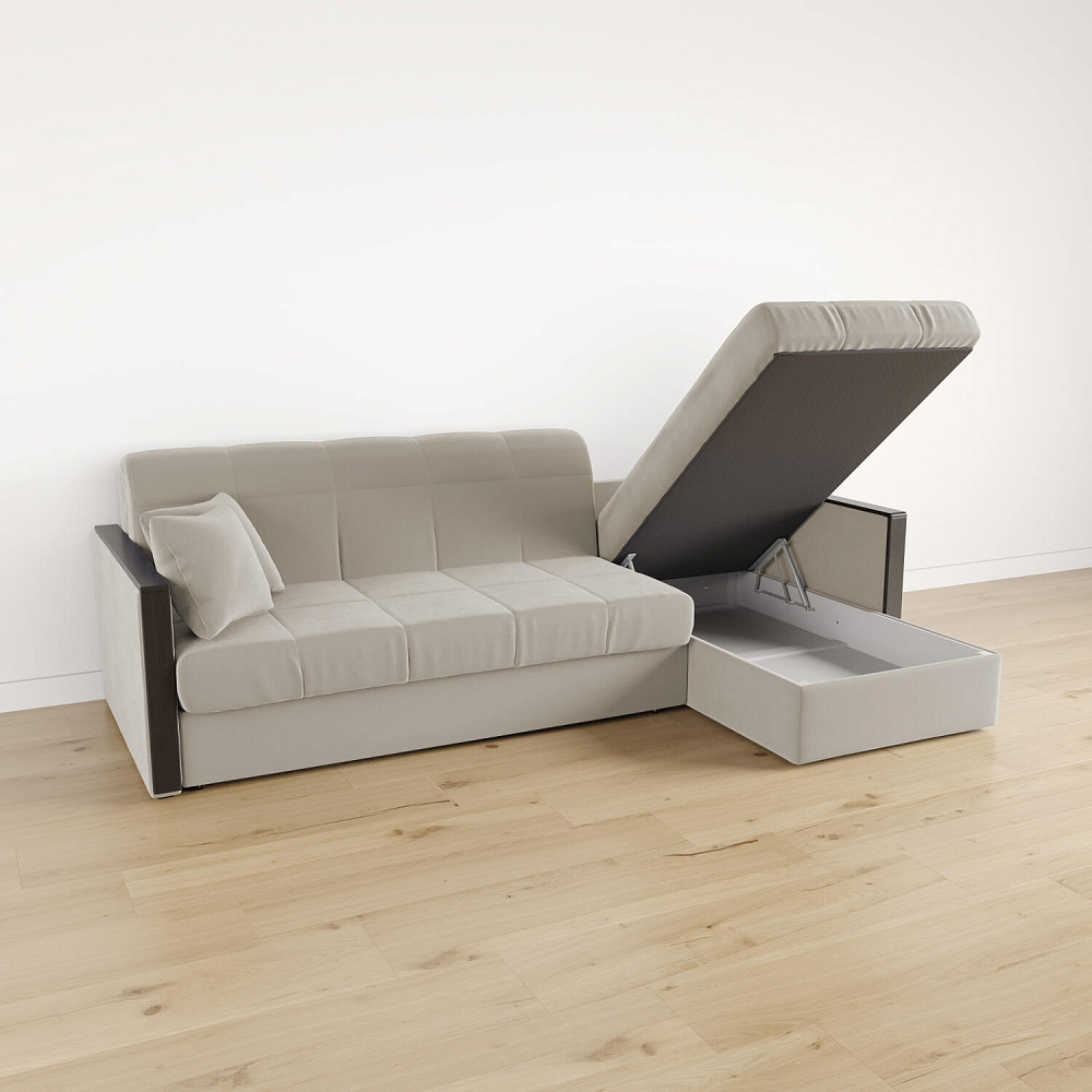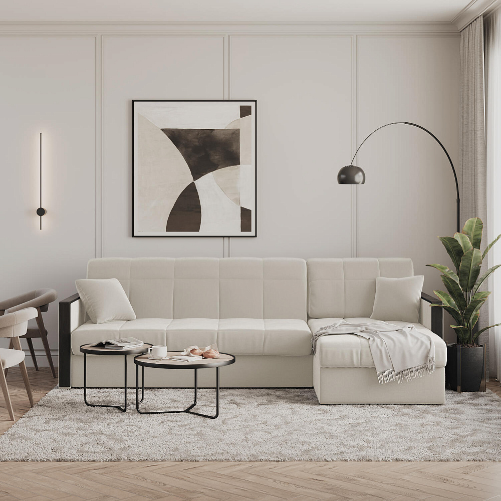 Угловой диван «Бристоль» с оттоманкой сделает отдых ещё удобнее. Модель оснащена накладками на подлокотниках, на которые удобно положить ТВ-пульт или смартфон. В оттоманке находится вместительный отсек для постельного белья и других вещей. Благодаря механизму трансформации «Аккордеон» диван легко превращается в полноценную кровать для двух человек. Пропорциональные формы, плавные линии декоративного канта подчеркивают лаконичный дизайн, поэтому диван подойдет для любого современного интерьера.