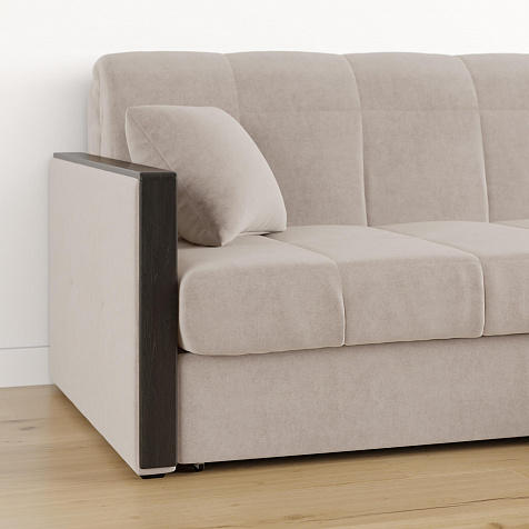 Механизм трансформации «Аккордеон». Чтобы разложить диван, необходимо приподнять сиденье и слегка потянуть на себя, далее диван разложится сам. Поверхность спального места ровная, без петель и швов, поэтому сон будет приятным и комфортным. Прорезиненные ролики защитят напольное покрытие от истирания.
