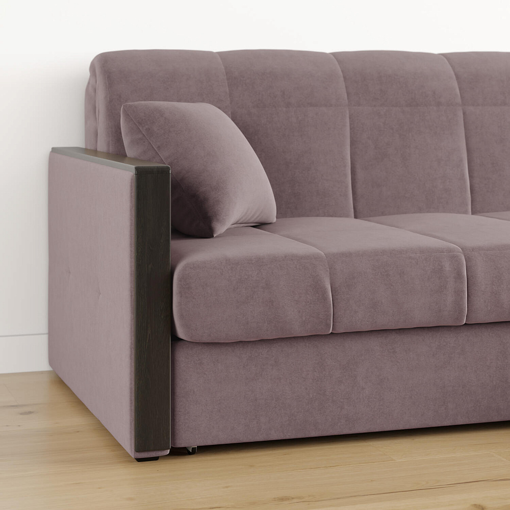Механизм трансформации «Аккордеон». Чтобы разложить диван, необходимо приподнять сиденье и слегка потянуть на себя, далее диван разложится сам. Поверхность спального места ровная, без петель и швов, поэтому сон будет приятным и комфортным. Прорезиненные ролики защитят напольное покрытие от истирания.
