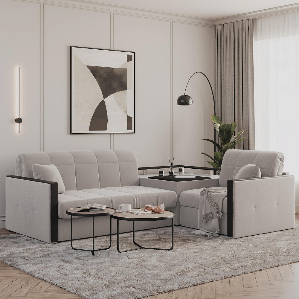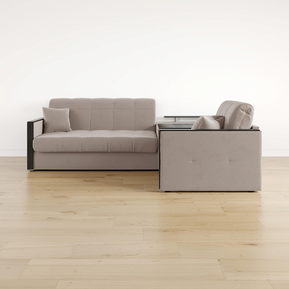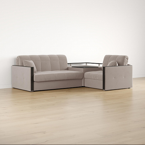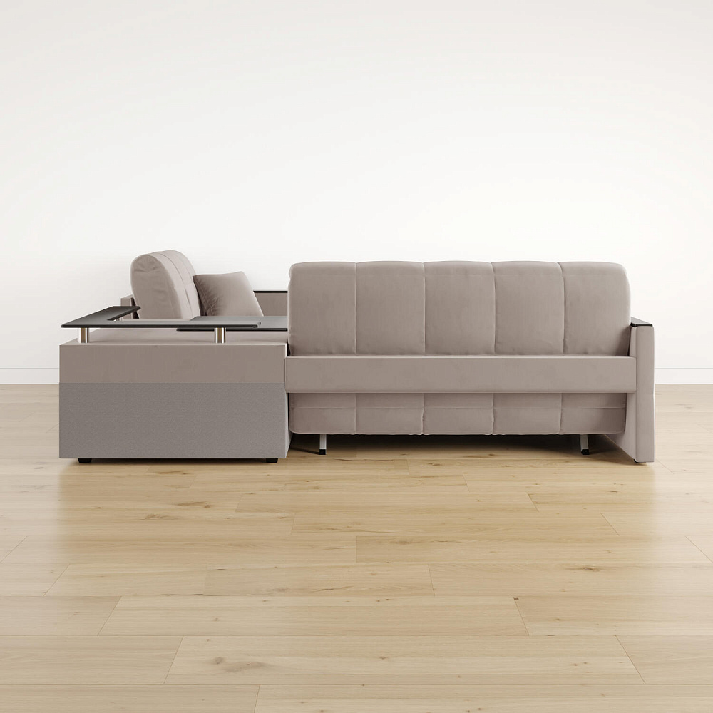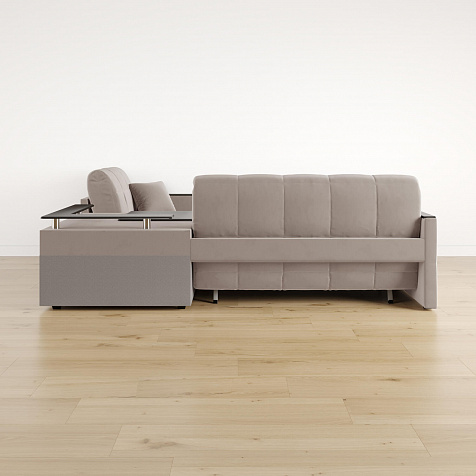 Угловой диван «Бристоль» с баром станет главным местом для отдыха и приема гостей. Модель оснащена баром, на котором можно расположить еду и напитки во время просмотра фильмов и сериалов. Вместительный короб и ящик для постельных принадлежностей. Благодаря механизму трансформации «Аккордеон» диван легко превращается в полноценную кровать для одного-двух человек. Пропорциональные формы, плавные линии декоративного канта подчеркивают лаконичный дизайн, поэтому диван подойдет для любого современного интерьера.