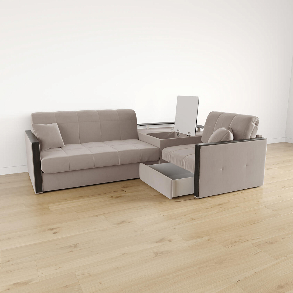 Универсальный угол. Диван подстроится под условия помещения — бар устанавливается как слева, так и справа.