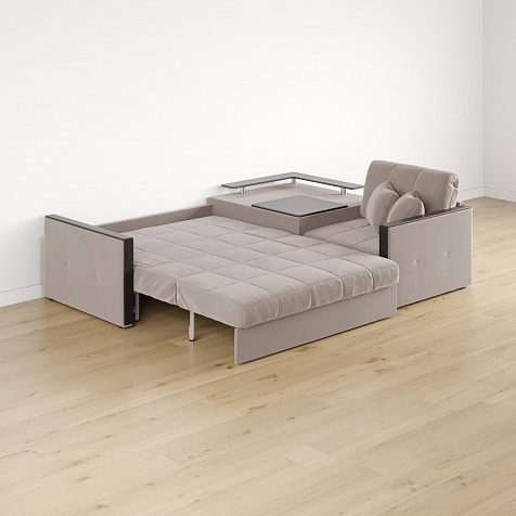 Размер спального места — 147 х 200 см. Диван легко трансформируется в двуспальную кровать, на которой смогут расположиться и с комфортом выспаться один-два человека.