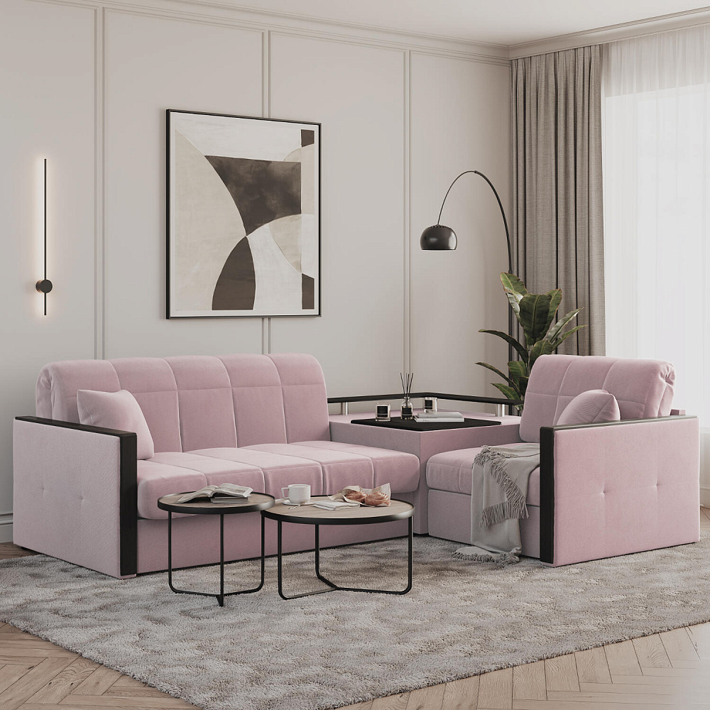 Обивка из велюра с влагоотталкивающей пропиткой. Плотная и мягкая ткань отличается ненавязчивым узором в виде мелких диагональных линий.