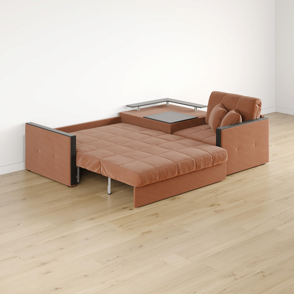 Размер спального места — 147 х 200 см. Диван легко трансформируется в двуспальную кровать, на которой смогут расположиться и с комфортом выспаться один-два человека.