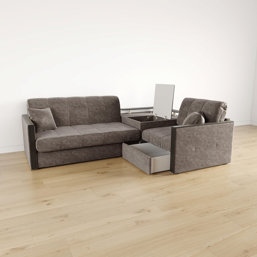 Универсальный угол. Диван подстроится под условия помещения — бар устанавливается как слева, так и справа.