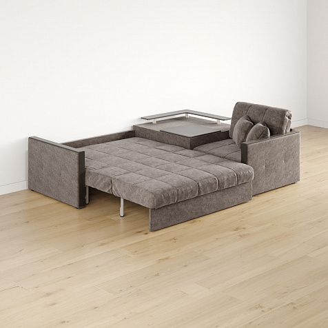 Размер спального места — 147 х 200 см. Диван легко трансформируется в двуспальную кровать, на которой смогут расположиться и с комфортом выспаться один-два человека.