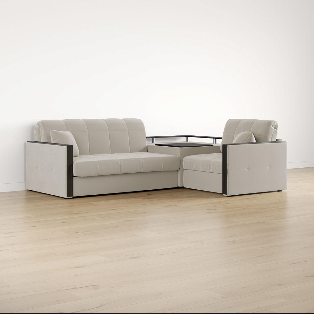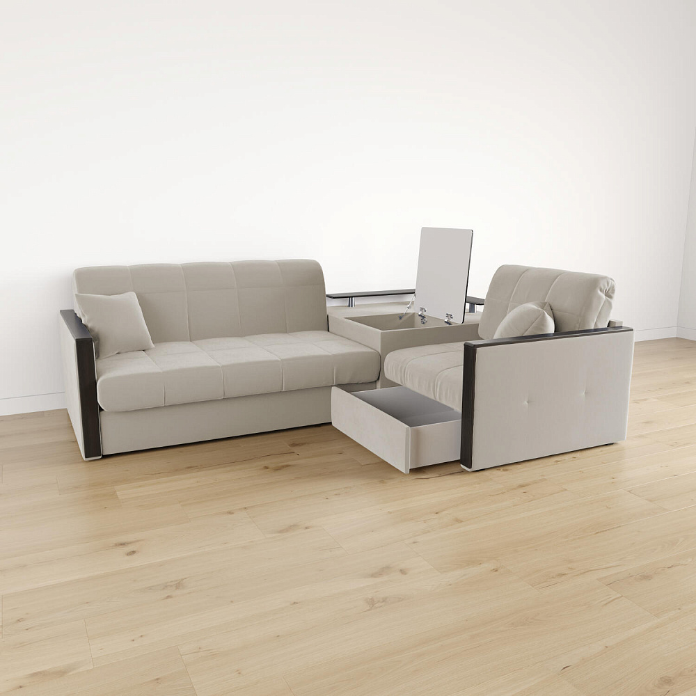 Угловой диван «Бристоль» с баром станет главным местом для отдыха и приема гостей. Модель оснащена баром, на котором можно расположить еду и напитки во время просмотра фильмов и сериалов. Вместительный короб и ящик для постельных принадлежностей. Благодаря механизму трансформации «Аккордеон» диван легко превращается в полноценную кровать для одного-двух человек. Пропорциональные формы, плавные линии декоративного канта подчеркивают лаконичный дизайн, поэтому диван подойдет для любого современного интерьера.