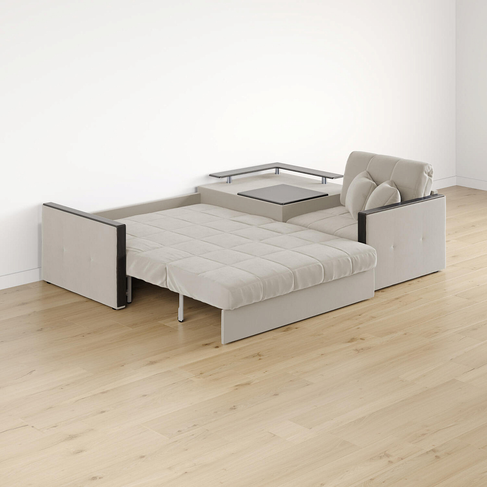 Вместительная система хранения. Под баром расположен вместительный короб, а в угловом модуле — глубокий ящик. В них удобно хранить одеяла, подушки, пледы и постельное белье.