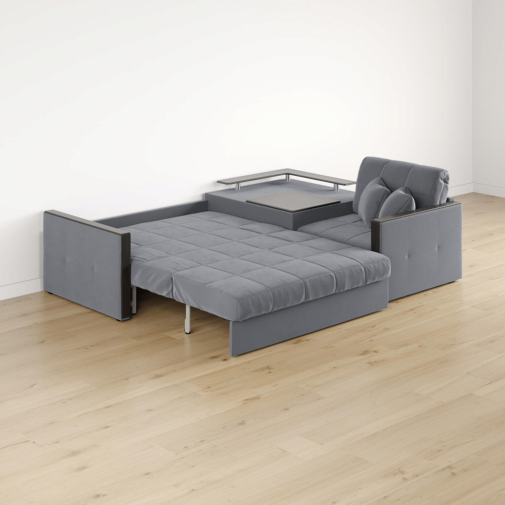 Вместительная система хранения. Под баром расположен вместительный короб, а в угловом модуле — глубокий ящик. В них удобно хранить одеяла, подушки, пледы и постельное белье.