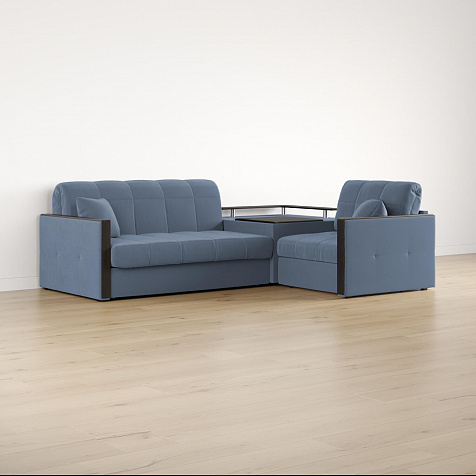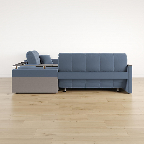 Угловой диван «Бристоль» с баром станет главным местом для отдыха и приема гостей. Модель оснащена баром, на котором можно расположить еду и напитки во время просмотра фильмов и сериалов. Вместительный короб и ящик для постельных принадлежностей. Благодаря механизму трансформации «Аккордеон» диван легко превращается в полноценную кровать для одного-двух человек. Пропорциональные формы, плавные линии декоративного канта подчеркивают лаконичный дизайн, поэтому диван подойдет для любого современного интерьера.