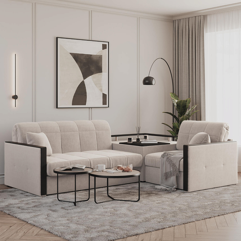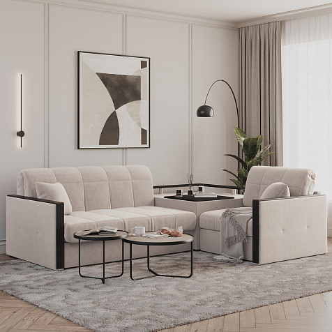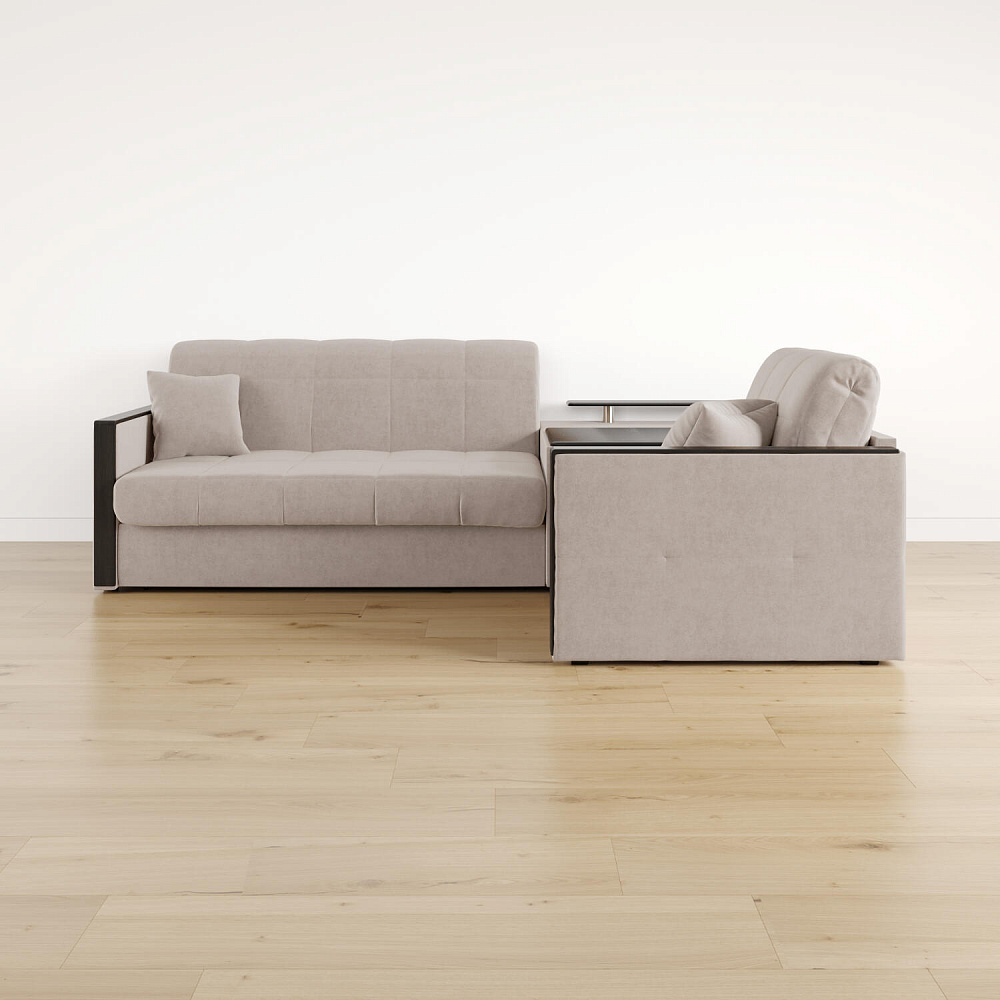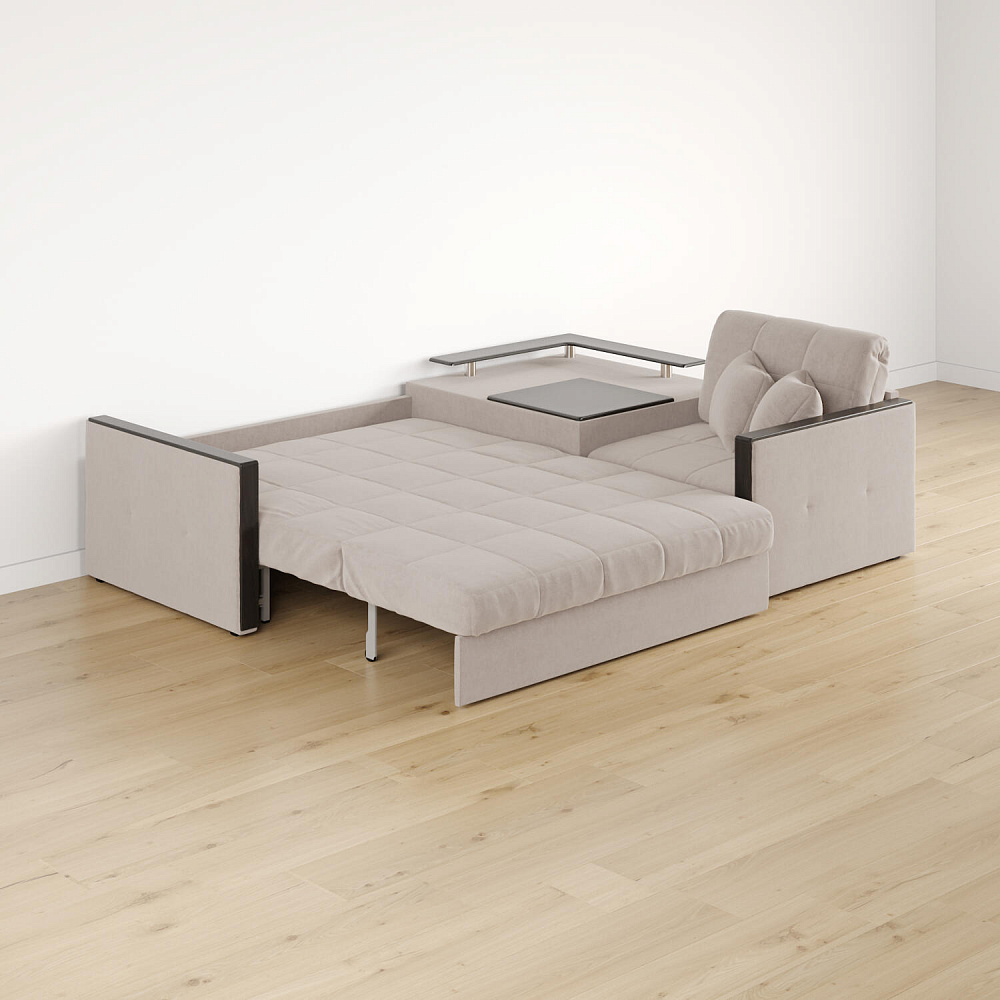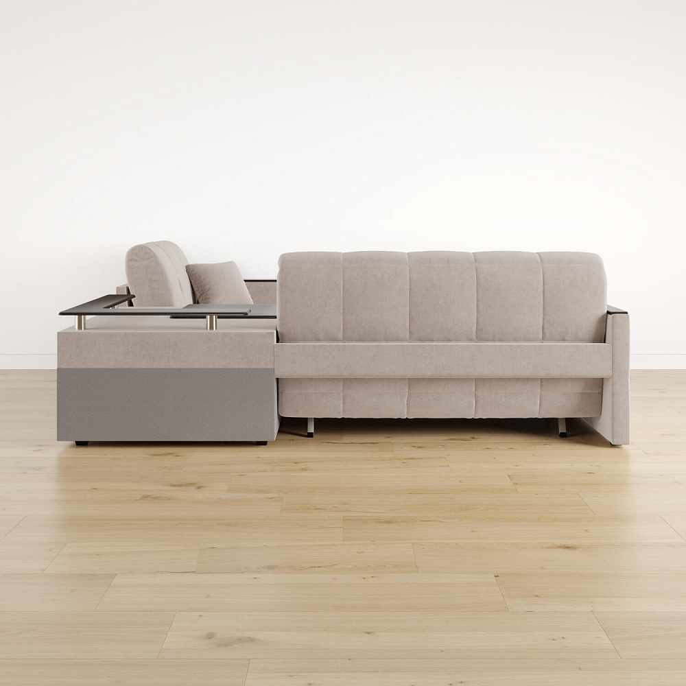 Угловой диван «Бристоль» с баром станет главным местом для отдыха и приема гостей. Модель оснащена баром, на котором можно расположить еду и напитки во время просмотра фильмов и сериалов. Вместительный короб и ящик для постельных принадлежностей. Благодаря механизму трансформации «Аккордеон» диван легко превращается в полноценную кровать для одного-двух человек. Пропорциональные формы, плавные линии декоративного канта подчеркивают лаконичный дизайн, поэтому диван подойдет для любого современного интерьера.