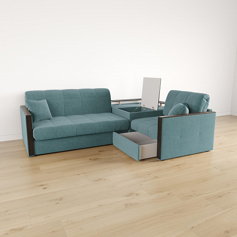 Вместительная система хранения. Под баром расположен вместительный короб, а в угловом модуле — глубокий ящик. В них удобно хранить одеяла, подушки, пледы и постельное белье.