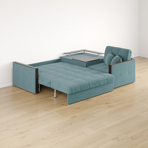 Механизм трансформации «Аккордеон». Чтобы разложить диван, необходимо приподнять сиденье и слегка потянуть на себя, далее диван разложится сам. Поверхность спального места ровная, без петель и швов, поэтому сон будет приятным и комфортным. Прорезиненные ролики защитят напольное покрытие от истирания.