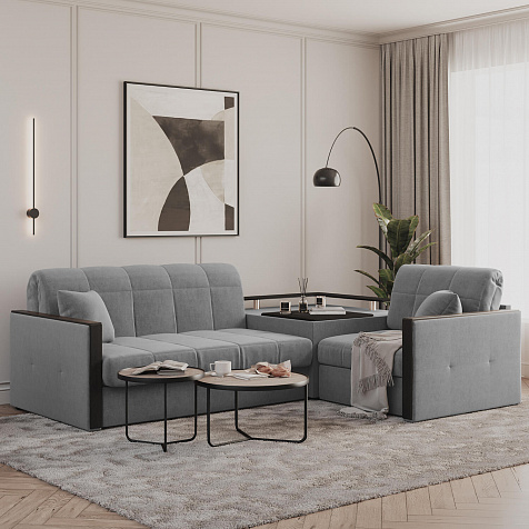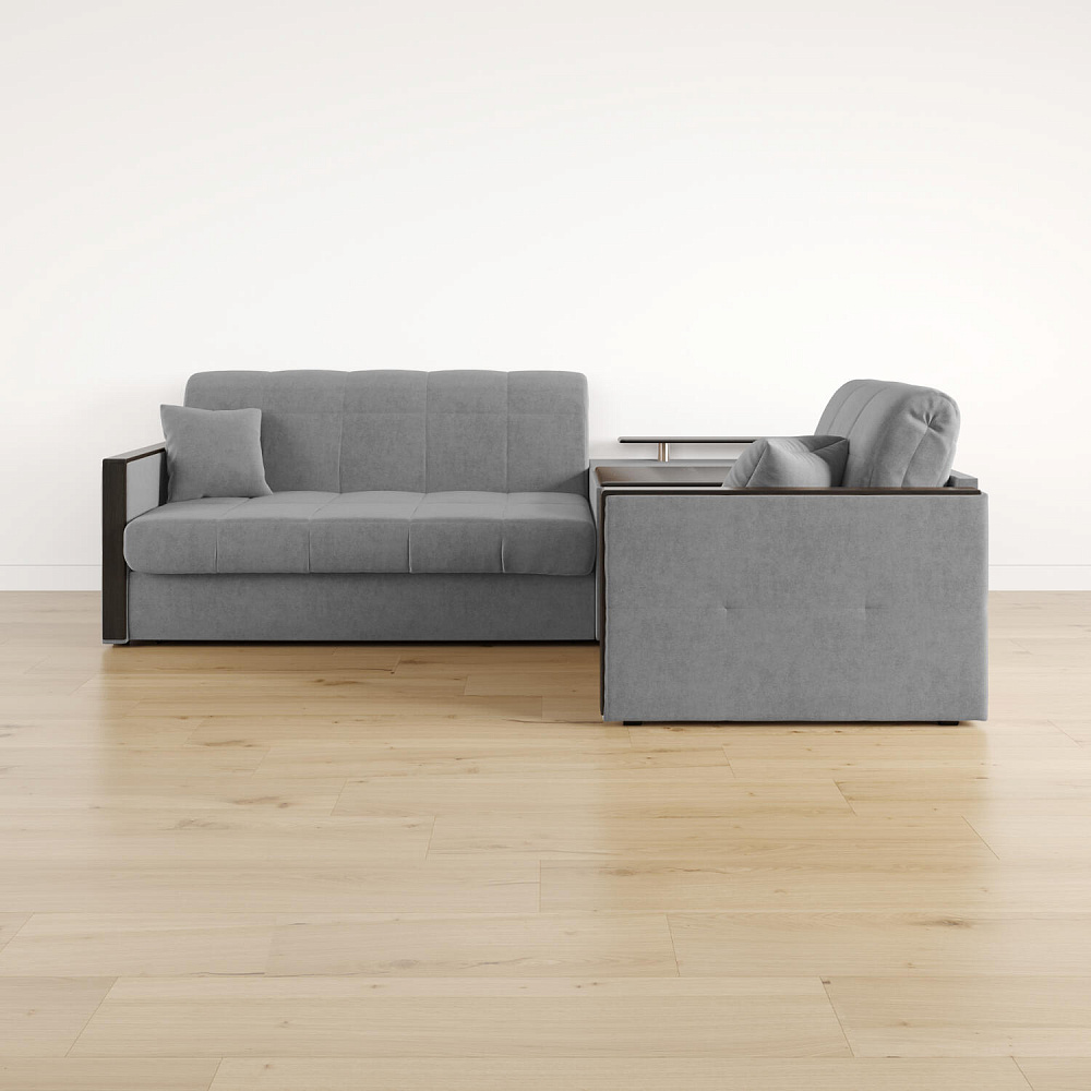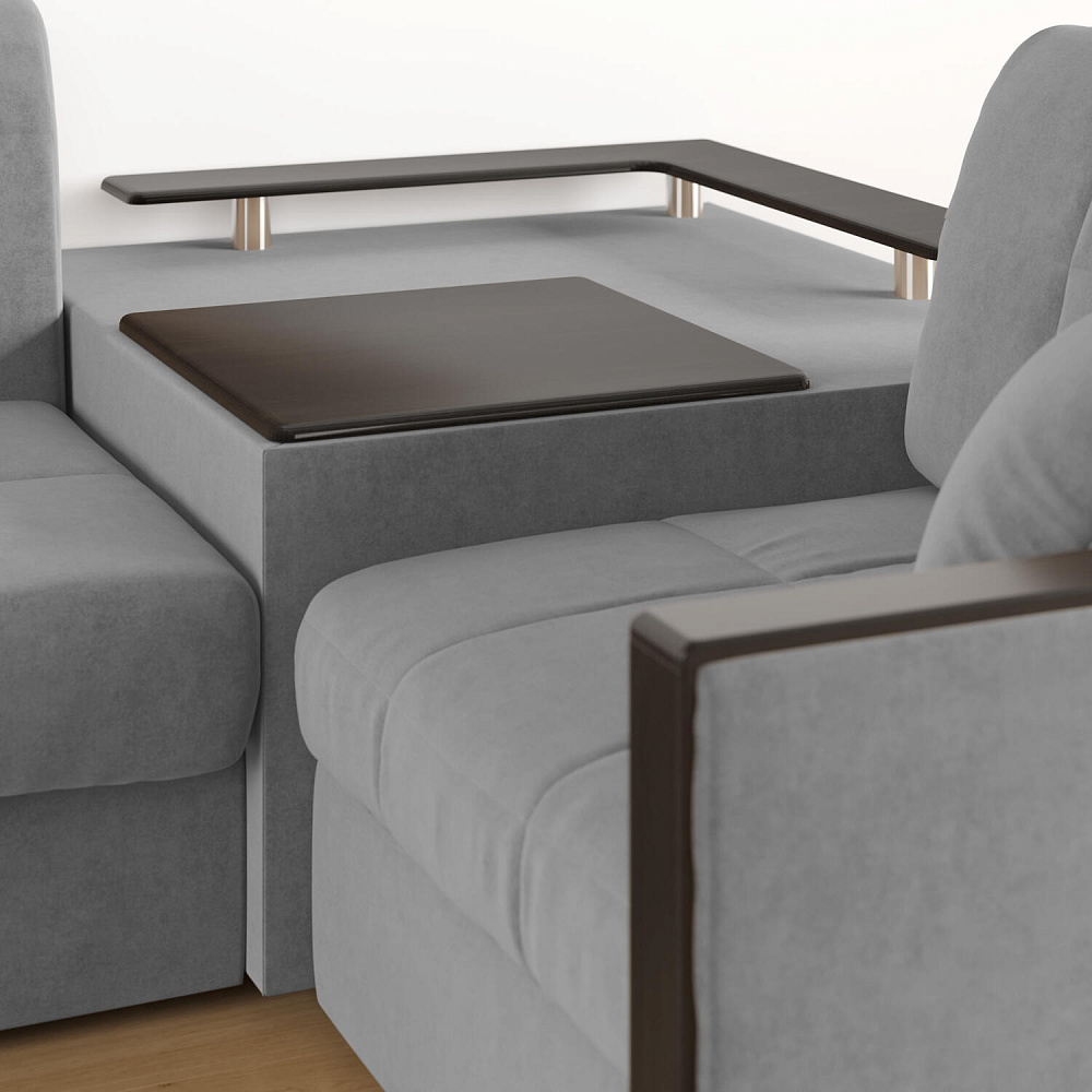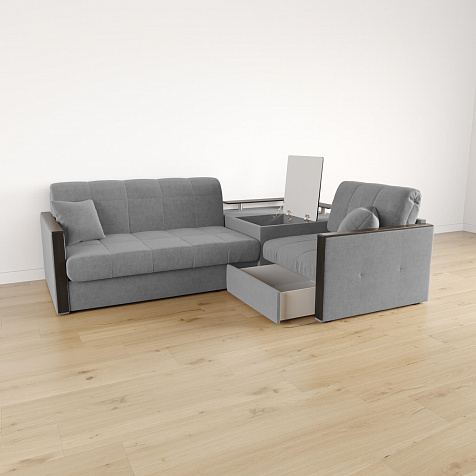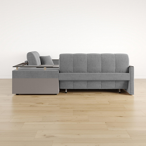 Угловой диван «Бристоль» с баром станет главным местом для отдыха и приема гостей. Модель оснащена баром, на котором можно расположить еду и напитки во время просмотра фильмов и сериалов. Вместительный короб и ящик для постельных принадлежностей. Благодаря механизму трансформации «Аккордеон» диван легко превращается в полноценную кровать для одного-двух человек. Пропорциональные формы, плавные линии декоративного канта подчеркивают лаконичный дизайн, поэтому диван подойдет для любого современного интерьера.