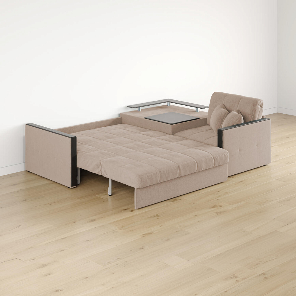 Вместительная система хранения. Под баром расположен вместительный короб, а в угловом модуле — глубокий ящик. В них удобно хранить одеяла, подушки, пледы и постельное белье.