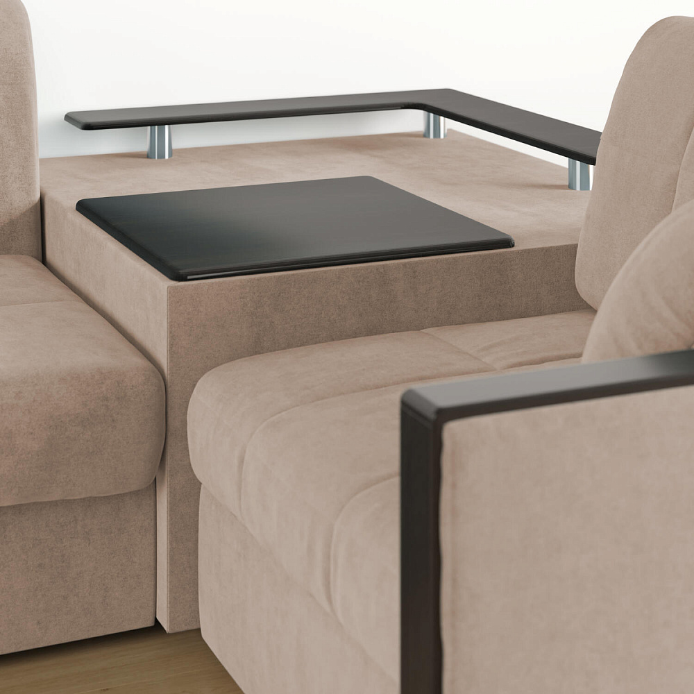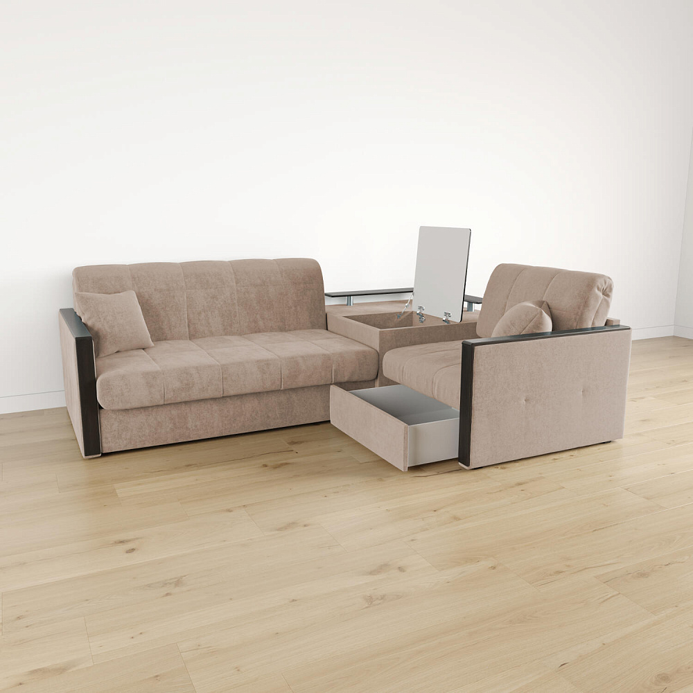 Угловой диван «Бристоль» с баром станет главным местом для отдыха и приема гостей. Модель оснащена баром, на котором можно расположить еду и напитки во время просмотра фильмов и сериалов. Вместительный короб и ящик для постельных принадлежностей. Благодаря механизму трансформации «Аккордеон» диван легко превращается в полноценную кровать для одного-двух человек. Пропорциональные формы, плавные линии декоративного канта подчеркивают лаконичный дизайн, поэтому диван подойдет для любого современного интерьера.
