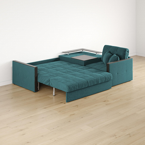 Размер спального места — 147 х 200 см. Диван легко трансформируется в двуспальную кровать, на которой смогут расположиться и с комфортом выспаться один-два человека.
