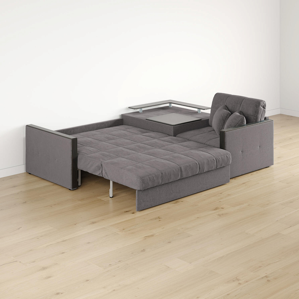 Угловой диван «Бристоль» с баром станет главным местом для отдыха и приема гостей. Модель оснащена баром, на котором можно расположить еду и напитки во время просмотра фильмов и сериалов. Вместительный короб и ящик для постельных принадлежностей. Благодаря механизму трансформации «Аккордеон» диван легко превращается в полноценную кровать для одного-двух человек. Пропорциональные формы, плавные линии декоративного канта подчеркивают лаконичный дизайн, поэтому диван подойдет для любого современного интерьера.