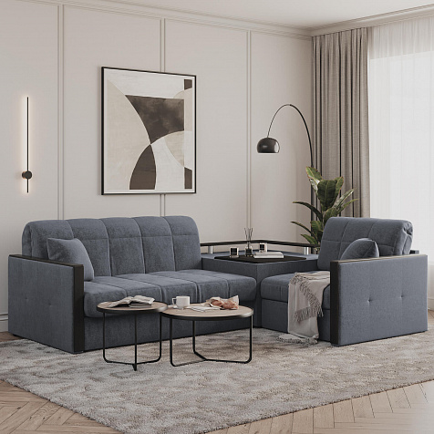 Угловой диван «Бристоль» с баром станет главным местом для отдыха и приема гостей. Модель оснащена баром, на котором можно расположить еду и напитки во время просмотра фильмов и сериалов. Вместительный короб и ящик для постельных принадлежностей. Благодаря механизму трансформации «Аккордеон» диван легко превращается в полноценную кровать для одного-двух человек. Пропорциональные формы, плавные линии декоративного канта подчеркивают лаконичный дизайн, поэтому диван подойдет для любого современного интерьера.
