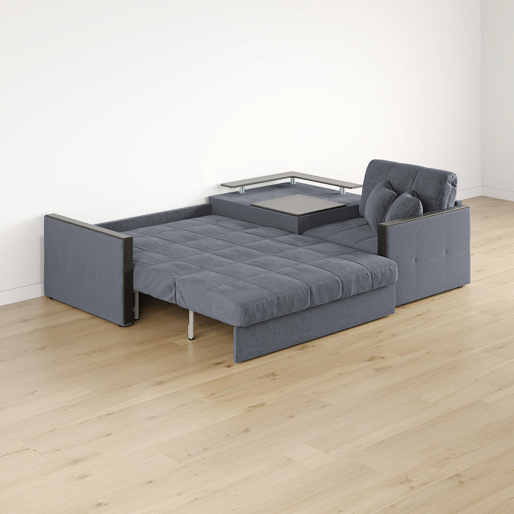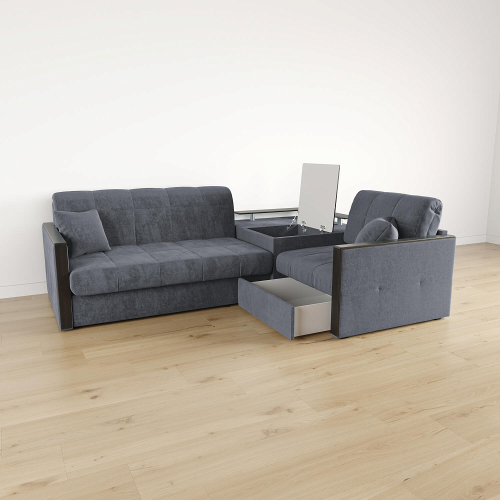 Вместительная система хранения. Под баром расположен вместительный короб, а в угловом модуле — глубокий ящик. В них удобно хранить одеяла, подушки, пледы и постельное белье.