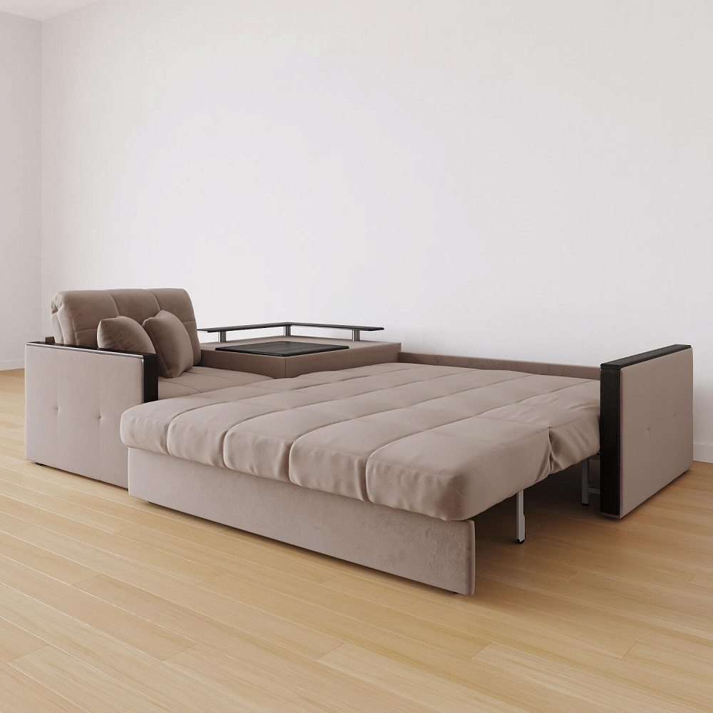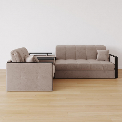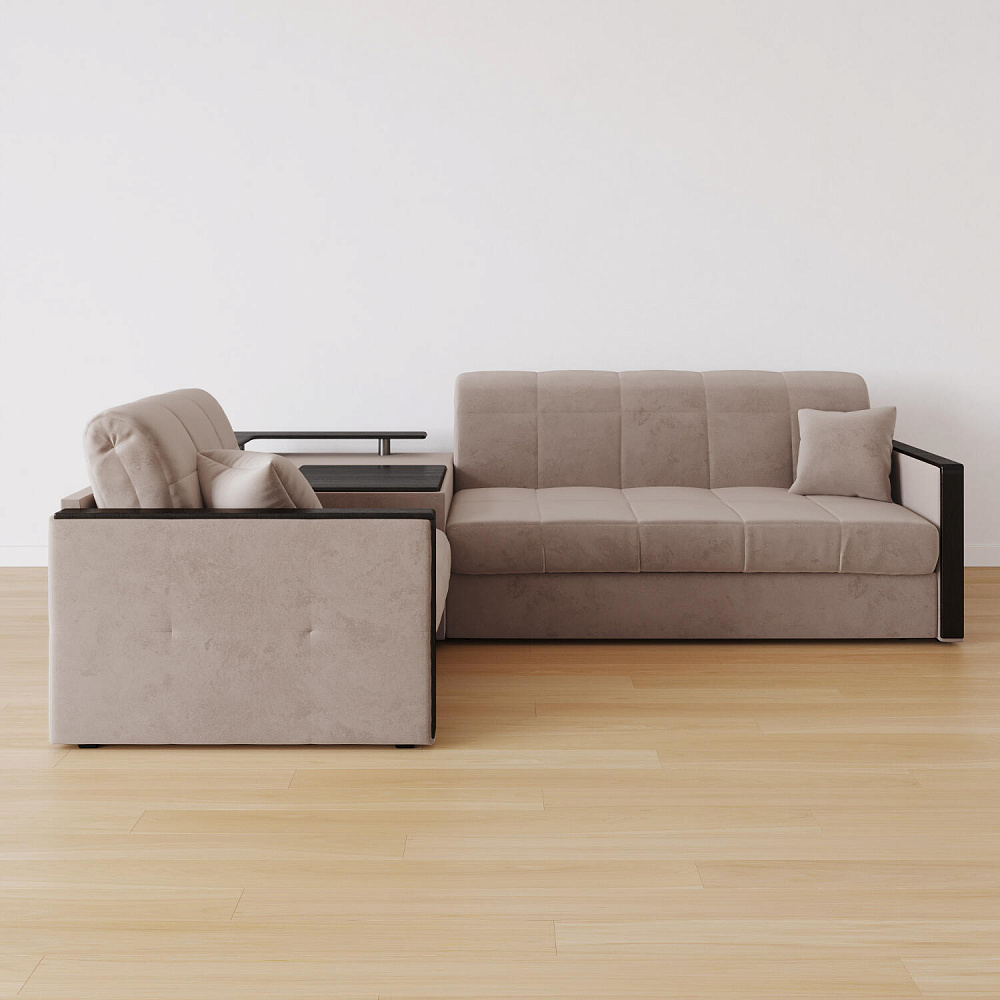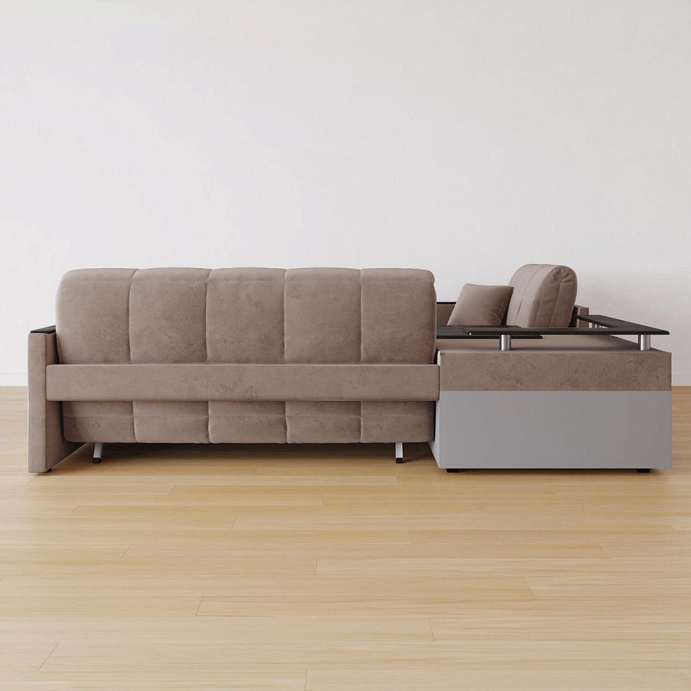 Угловой диван «Бристоль» с баром станет главным местом для отдыха и приема гостей. Модель оснащена баром, на котором можно расположить еду и напитки во время просмотра фильмов и сериалов. Вместительный короб и ящик для постельных принадлежностей. Благодаря механизму трансформации «Аккордеон» диван легко превращается в полноценную кровать для двух человек. Пропорциональные формы, плавные линии декоративного канта подчеркивают лаконичный дизайн, поэтому диван подойдет для любого современного интерьера.
