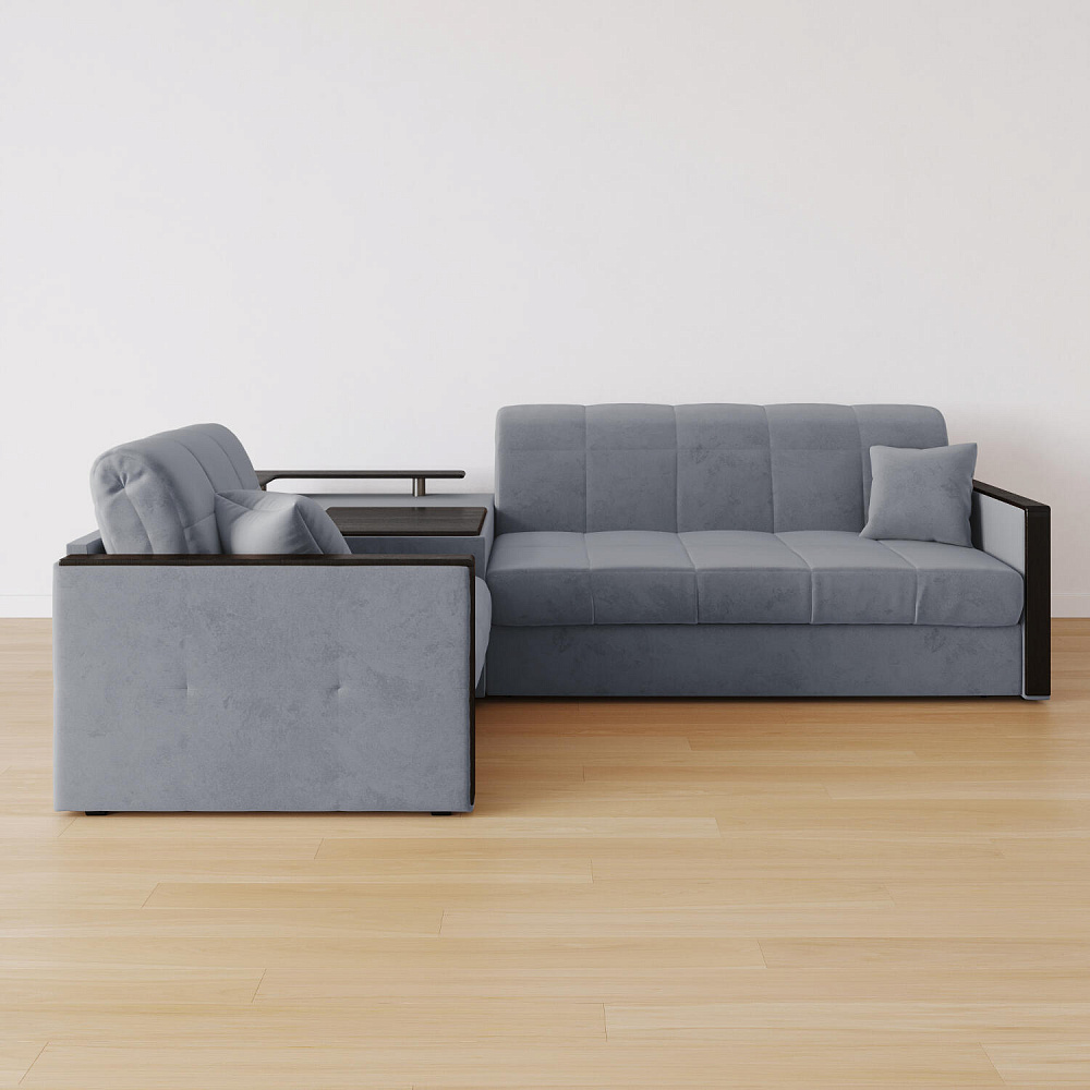 Угловой диван «Бристоль» с баром станет главным местом для отдыха и приема гостей. Модель оснащена баром, на котором можно расположить еду и напитки во время просмотра фильмов и сериалов. Вместительный короб и ящик для постельных принадлежностей. Благодаря механизму трансформации «Аккордеон» диван легко превращается в полноценную кровать для двух человек. Пропорциональные формы, плавные линии декоративного канта подчеркивают лаконичный дизайн, поэтому диван подойдет для любого современного интерьера.