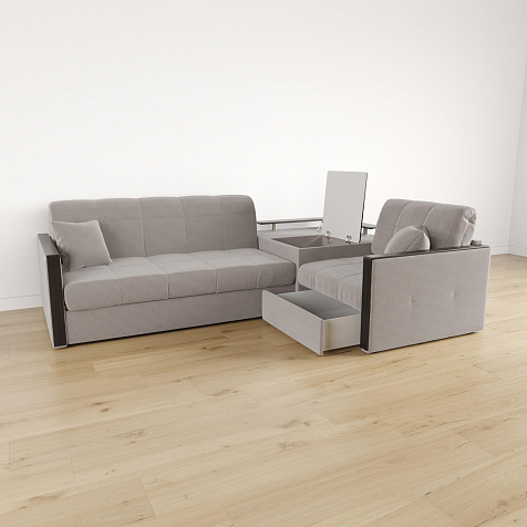 Вместительная система хранения. Под баром расположен вместительный короб, а в угловом модуле — глубокий ящик. В них удобно хранить одеяла, подушки, пледы и постельное белье.