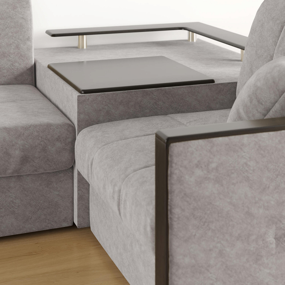 Угловой диван «Бристоль» с баром станет главным местом для отдыха и приема гостей. Модель оснащена баром, на котором можно расположить еду и напитки во время просмотра фильмов и сериалов. Вместительный короб и ящик для постельных принадлежностей. Благодаря механизму трансформации «Аккордеон» диван легко превращается в полноценную кровать для двух человек. Пропорциональные формы, плавные линии декоративного канта подчеркивают лаконичный дизайн, поэтому диван подойдет для любого современного интерьера.