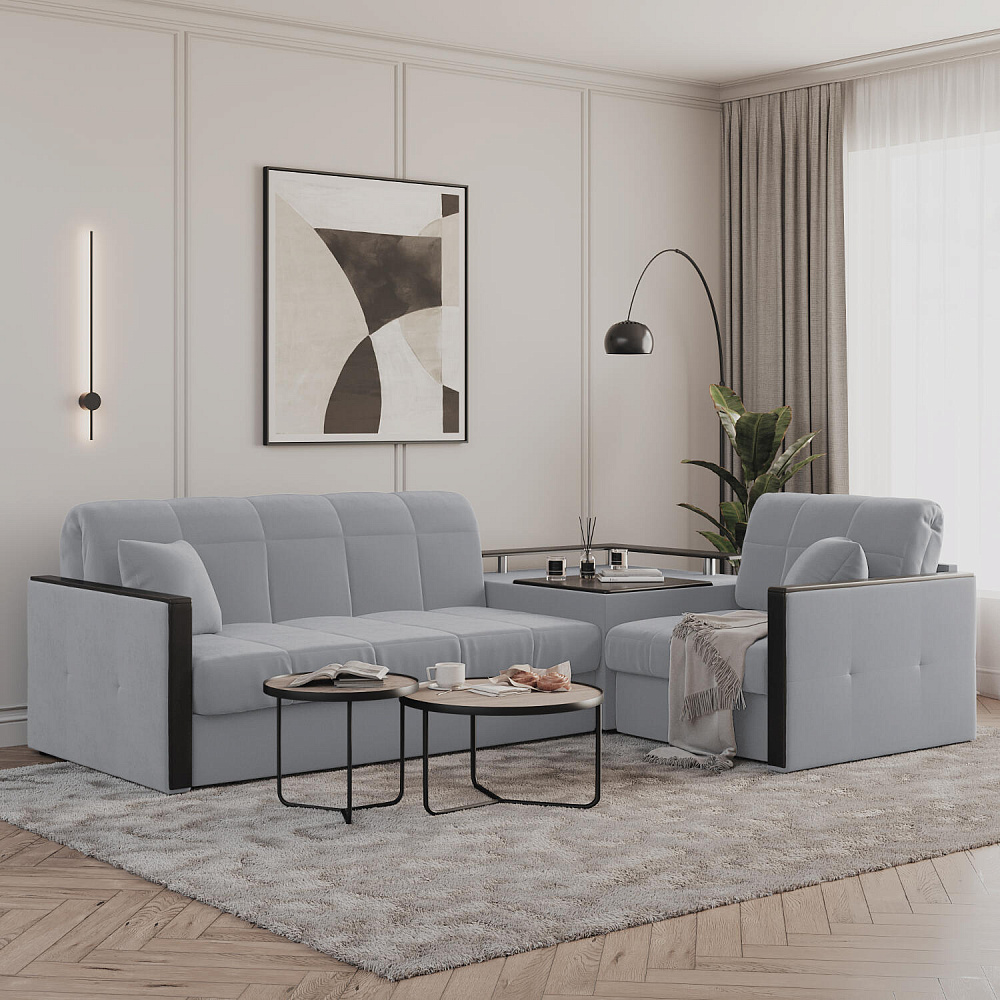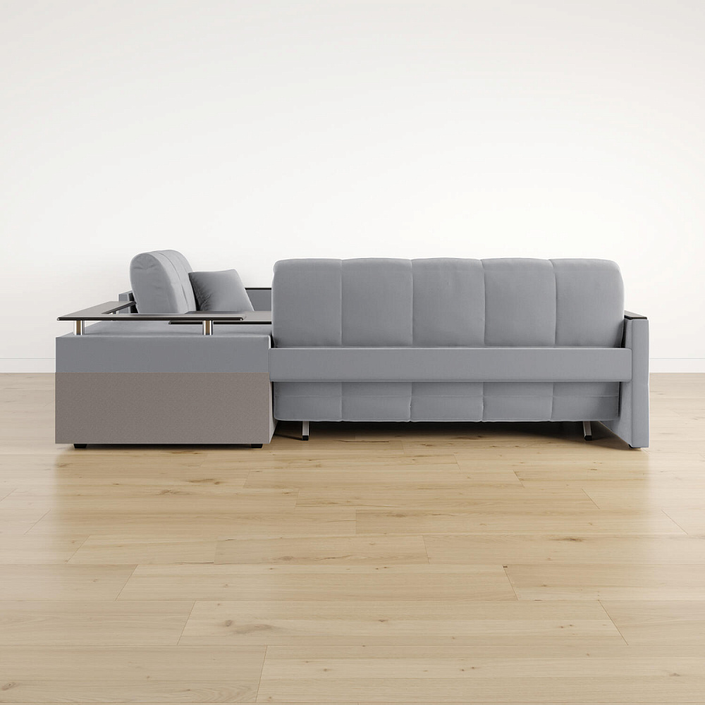 Угловой диван «Бристоль» с баром станет главным местом для отдыха и приема гостей. Модель оснащена баром, на котором можно расположить еду и напитки во время просмотра фильмов и сериалов. Вместительный короб и ящик для постельных принадлежностей. Благодаря механизму трансформации «Аккордеон» диван легко превращается в полноценную кровать для двух человек. Пропорциональные формы, плавные линии декоративного канта подчеркивают лаконичный дизайн, поэтому диван подойдет для любого современного интерьера.