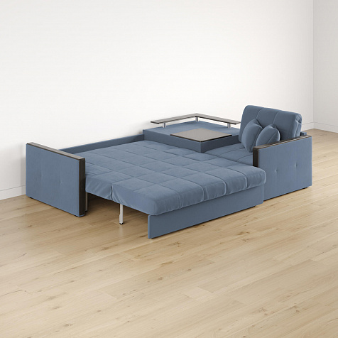 Угловой диван «Бристоль» с баром станет главным местом для отдыха и приема гостей. Модель оснащена баром, на котором можно расположить еду и напитки во время просмотра фильмов и сериалов. Вместительный короб и ящик для постельных принадлежностей. Благодаря механизму трансформации «Аккордеон» диван легко превращается в полноценную кровать для двух человек. Пропорциональные формы, плавные линии декоративного канта подчеркивают лаконичный дизайн, поэтому диван подойдет для любого современного интерьера.