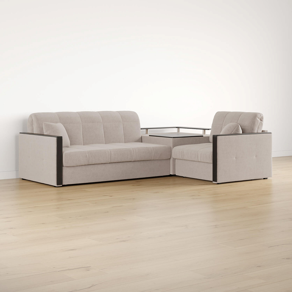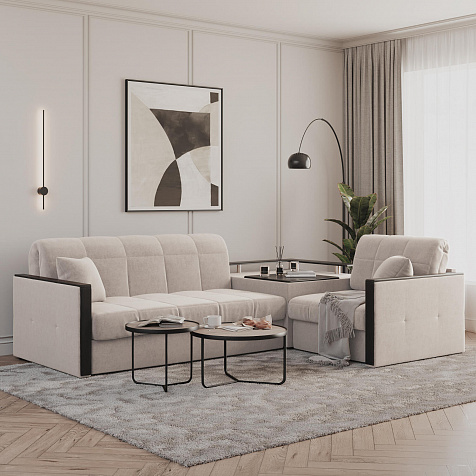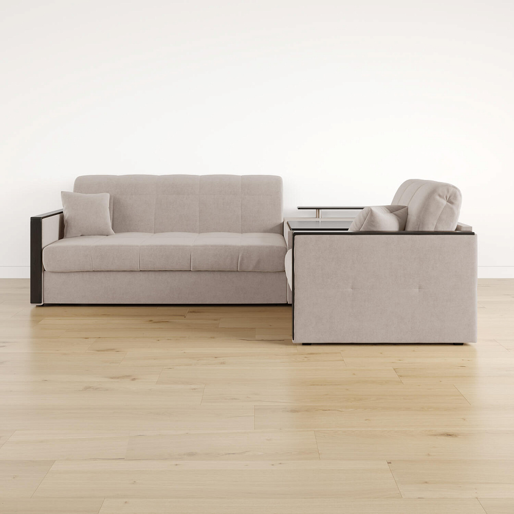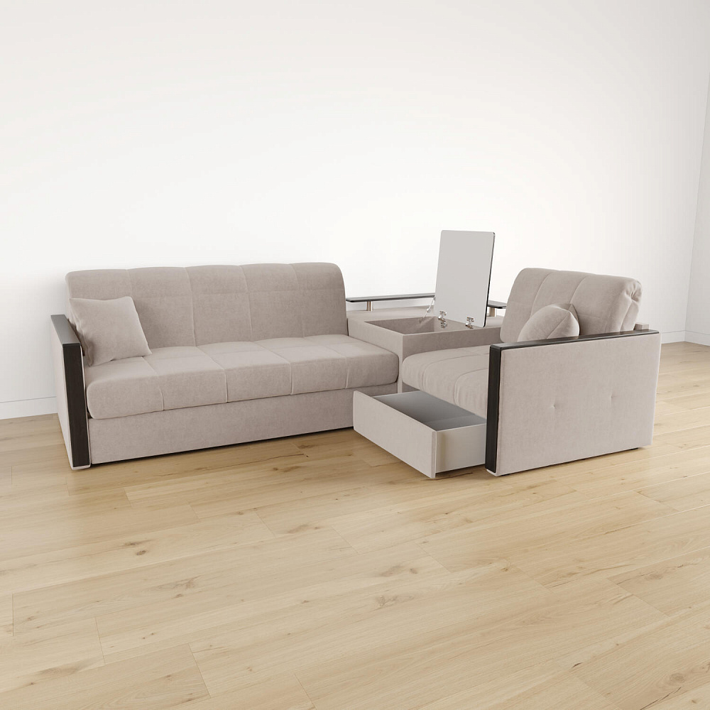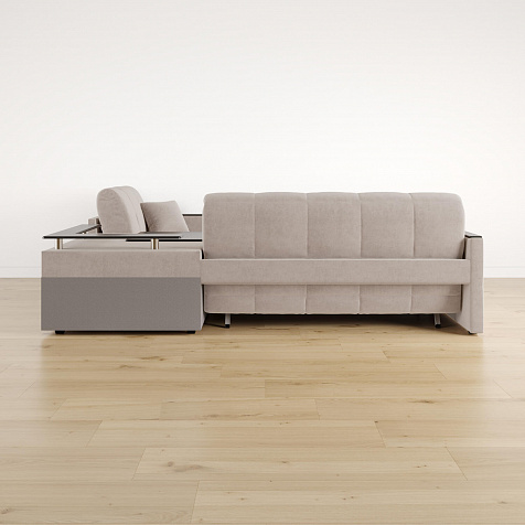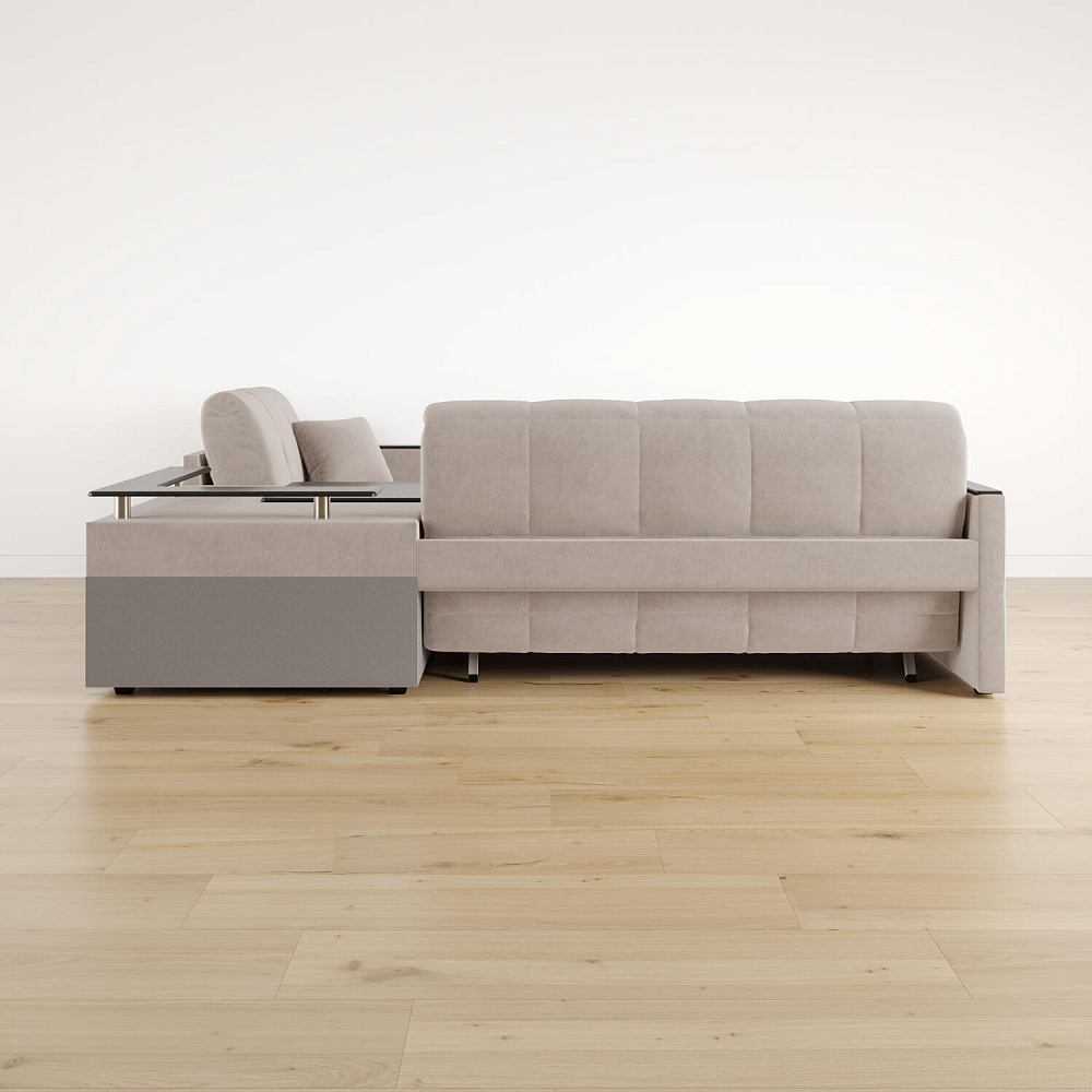 Угловой диван «Бристоль» с баром станет главным местом для отдыха и приема гостей. Модель оснащена баром, на котором можно расположить еду и напитки во время просмотра фильмов и сериалов. Вместительный короб и ящик для постельных принадлежностей. Благодаря механизму трансформации «Аккордеон» диван легко превращается в полноценную кровать для двух человек. Пропорциональные формы, плавные линии декоративного канта подчеркивают лаконичный дизайн, поэтому диван подойдет для любого современного интерьера.