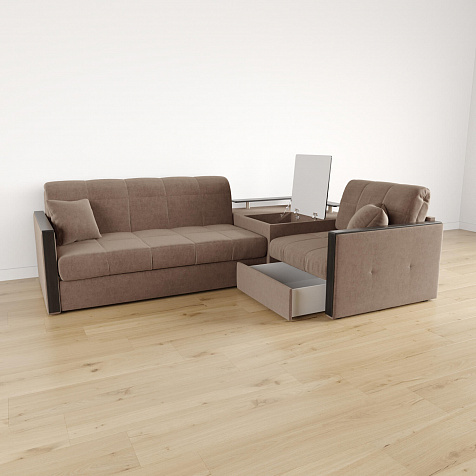 Lazurit Диван угловой с баром Камелот 1,4