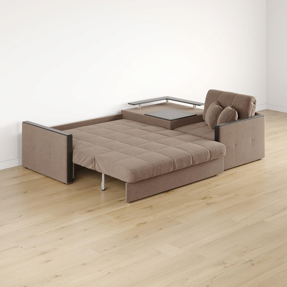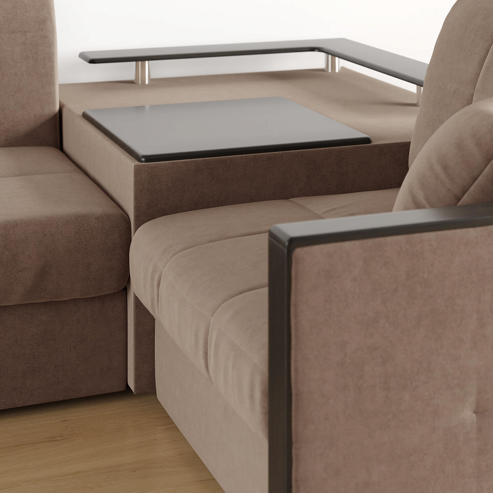Угловой диван «Бристоль» с баром станет главным местом для отдыха и приема гостей. Модель оснащена баром, на котором можно расположить еду и напитки во время просмотра фильмов и сериалов. Вместительный короб и ящик для постельных принадлежностей. Благодаря механизму трансформации «Аккордеон» диван легко превращается в полноценную кровать для двух человек. Пропорциональные формы, плавные линии декоративного канта подчеркивают лаконичный дизайн, поэтому диван подойдет для любого современного интерьера.