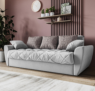 Механизм трансформации «Аккордеон». Чтобы разложить диван, необходимо приподнять сиденье и слегка потянуть на себя, далее диван разложится сам. Поверхность спального места ровная, без петель и швов, поэтому сон будет приятным и комфортным. Прорезиненные ролики защитят напольное покрытие от истирания.