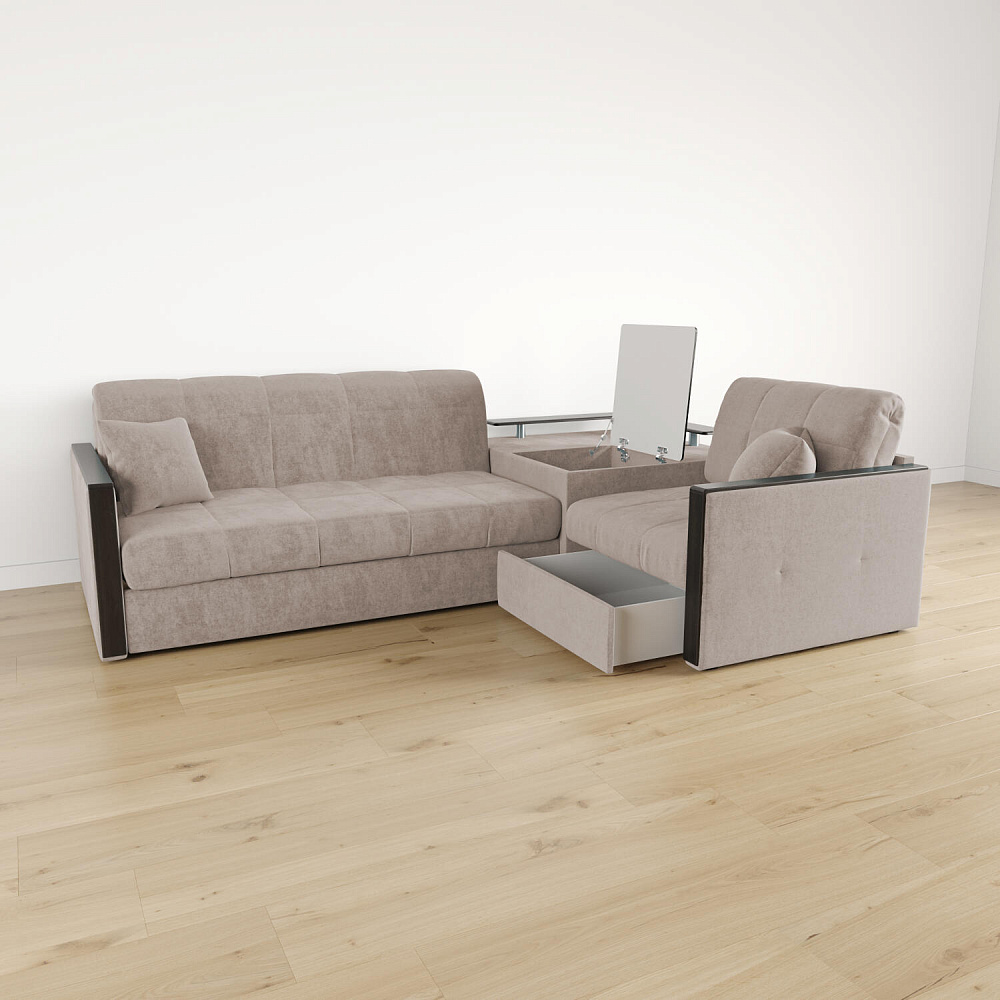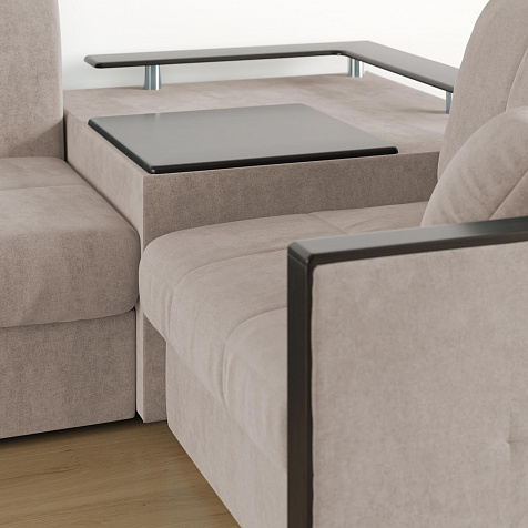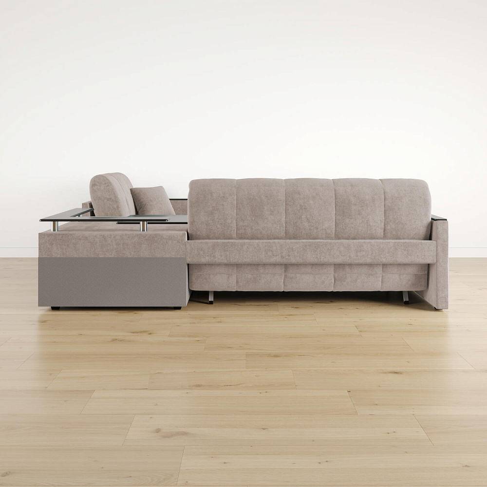 Угловой диван «Бристоль» с баром станет главным местом для отдыха и приема гостей. Модель оснащена баром, на котором можно расположить еду и напитки во время просмотра фильмов и сериалов. Вместительный короб и ящик для постельных принадлежностей. Благодаря механизму трансформации «Аккордеон» диван легко превращается в полноценную кровать для двух человек. Пропорциональные формы, плавные линии декоративного канта подчеркивают лаконичный дизайн, поэтому диван подойдет для любого современного интерьера.